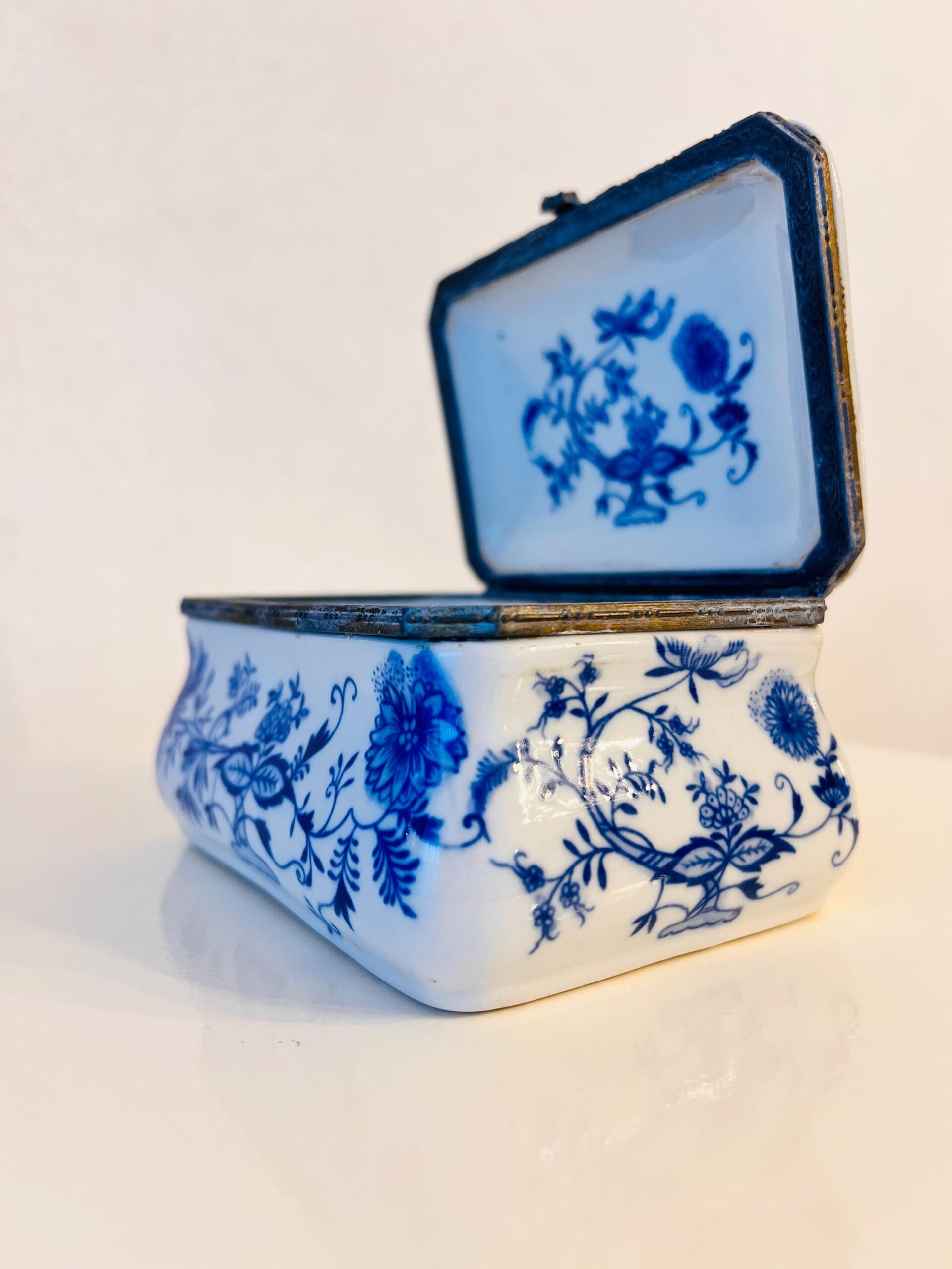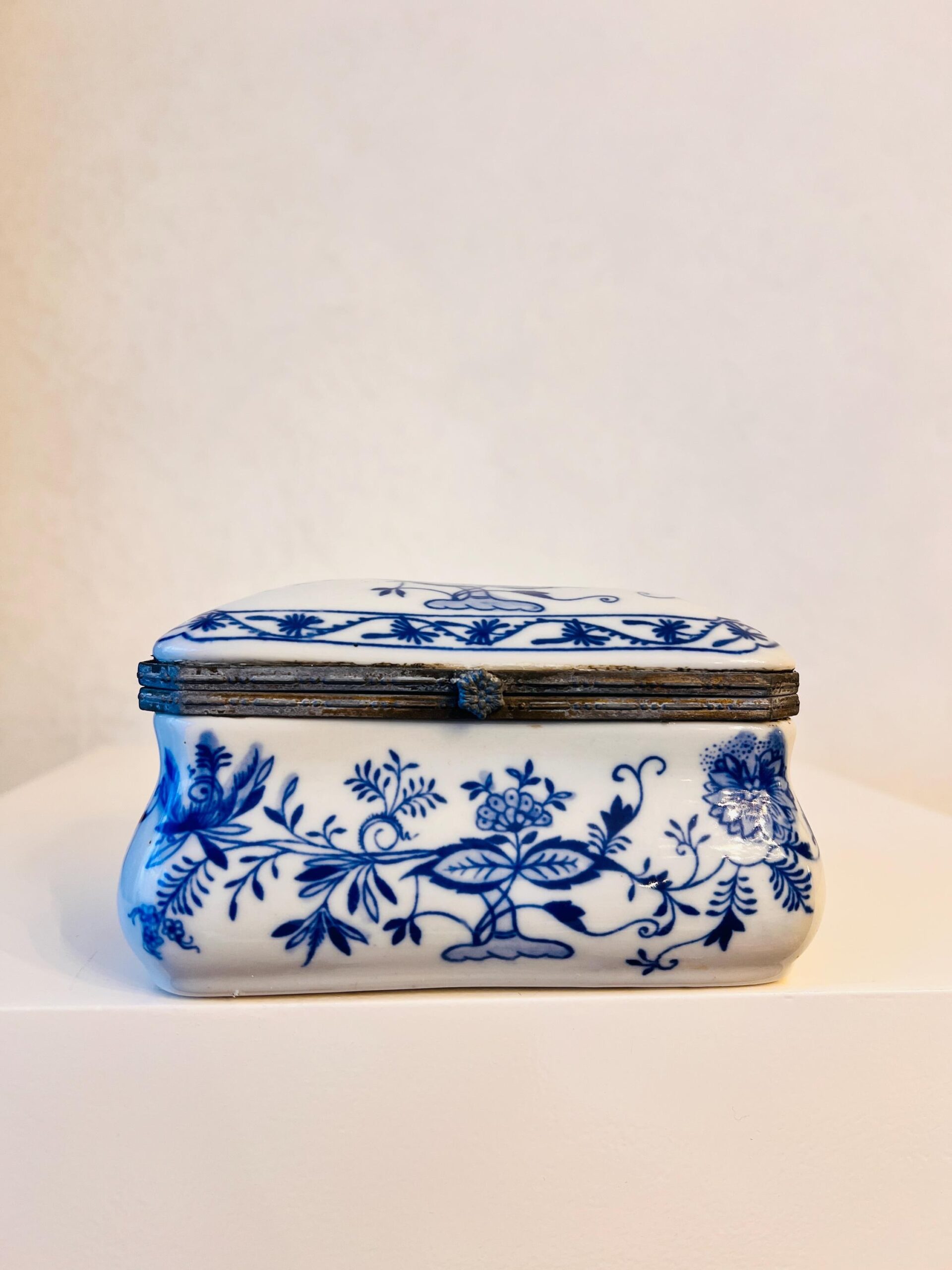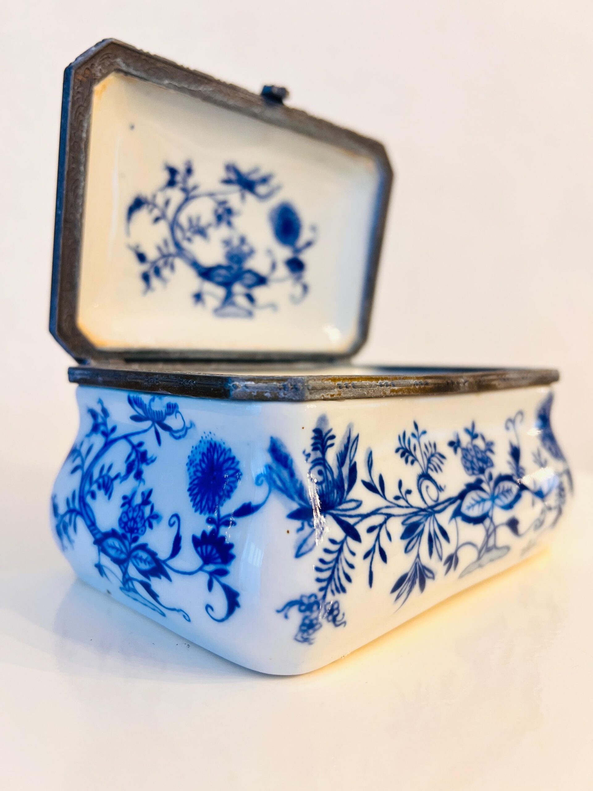 Porcelain Jewelry Box – Blue Onion Danube Design, Hand Painted Vintage Keepsake