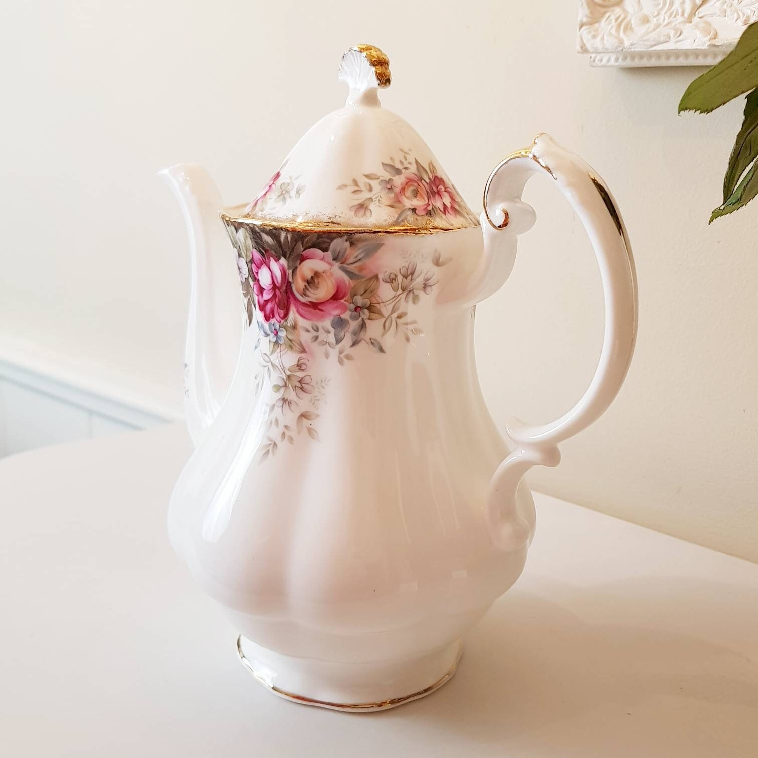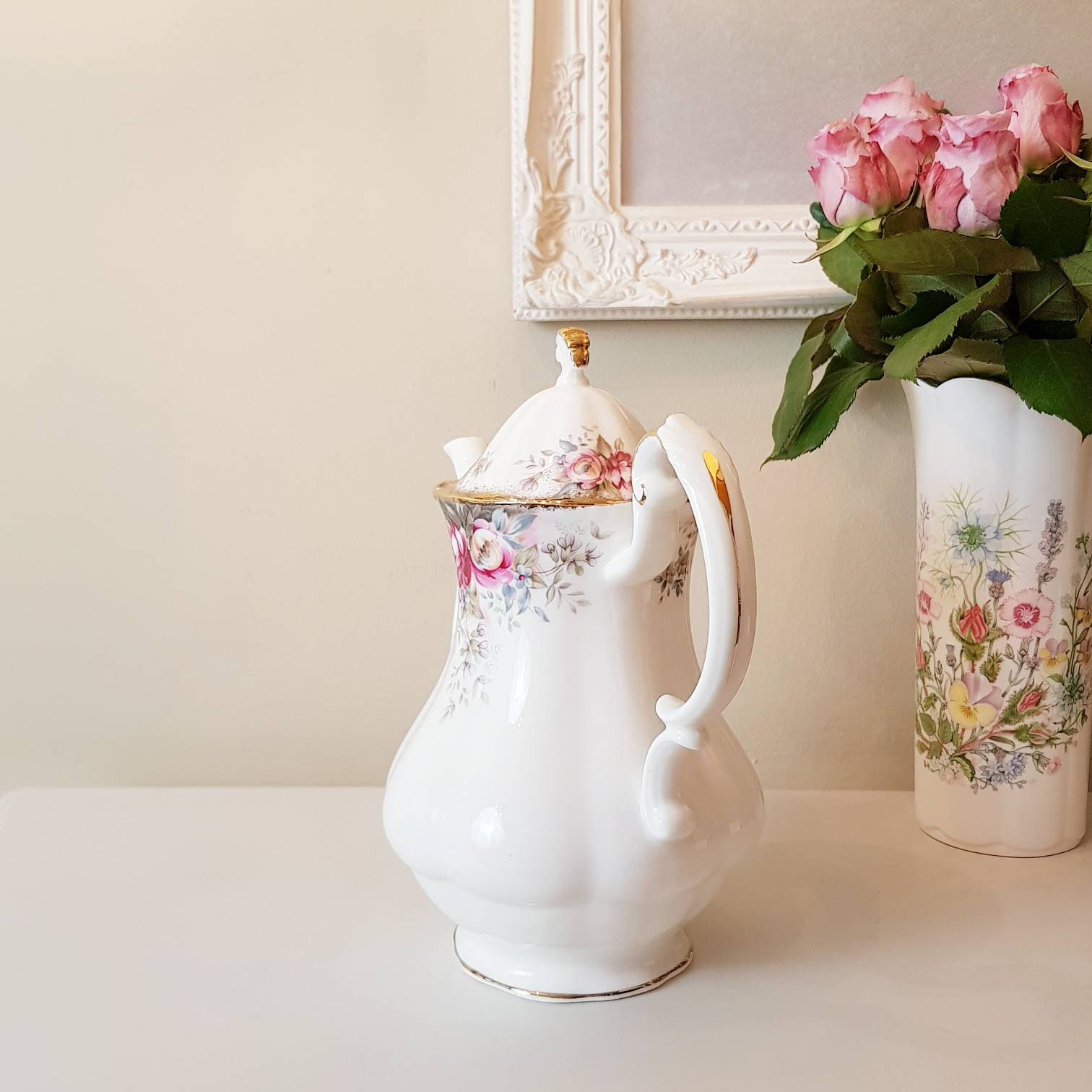 Queen Anne Summer Rose Coffeepot, Fine Bone China, Made in England, Gift Idea