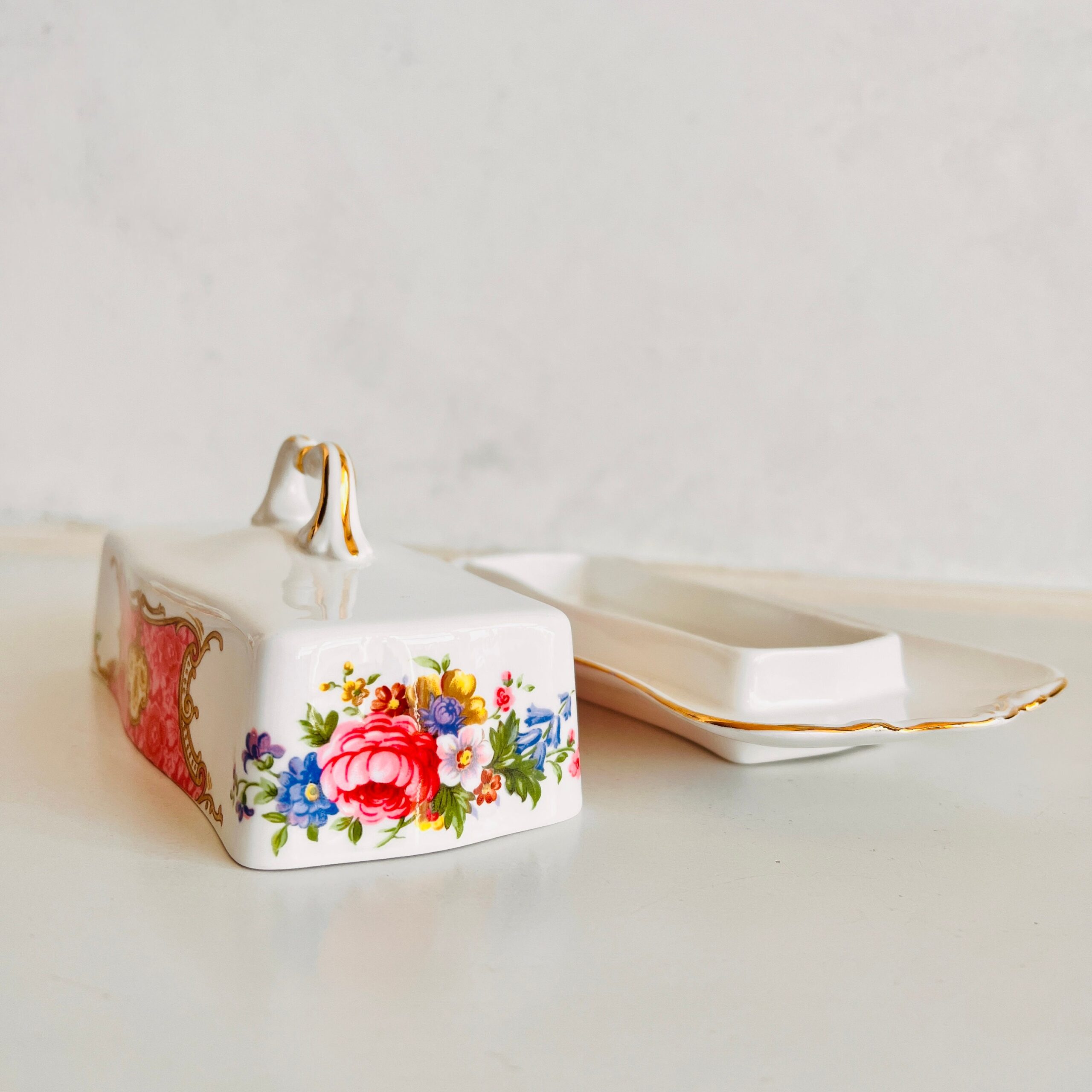 Rare find! Royal Albert ‘Lady Carlyle’ Butter Dish with Lid, Vintage Crockery, 1st quality, made in England
