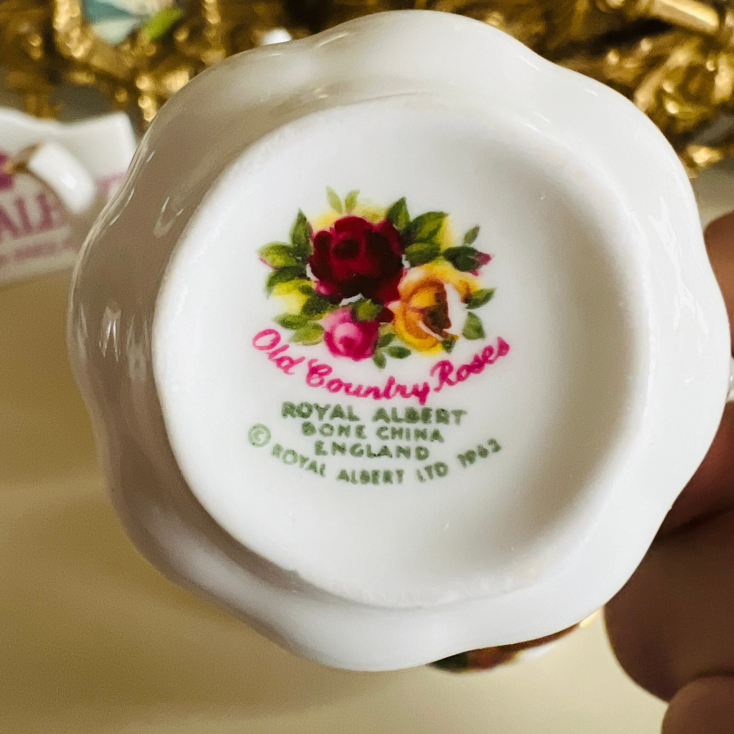 Back-stamp: Old Country Roses, Bone China, England, © Royal Albert 1963 Ltd.