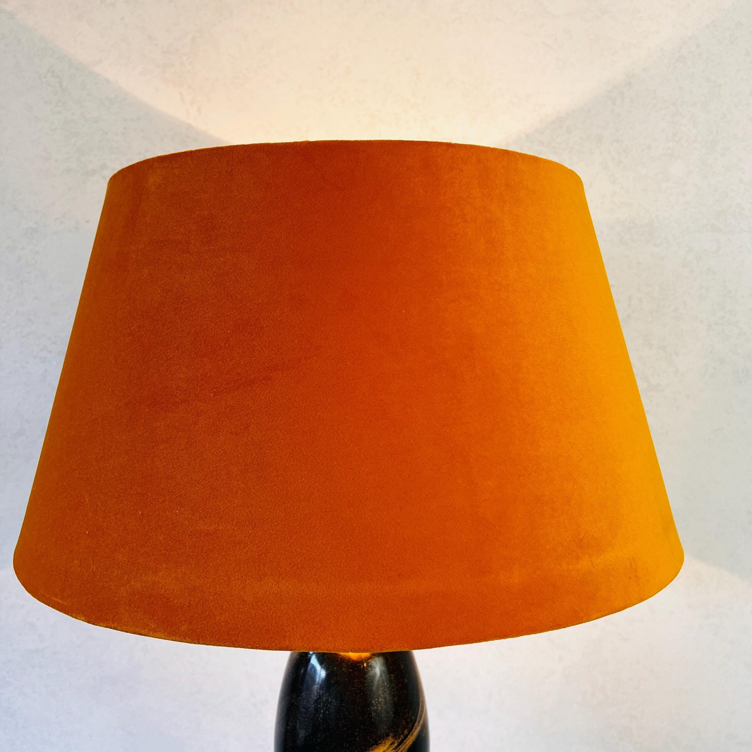 β’ Textured orange fabric lampshade radiates warm light