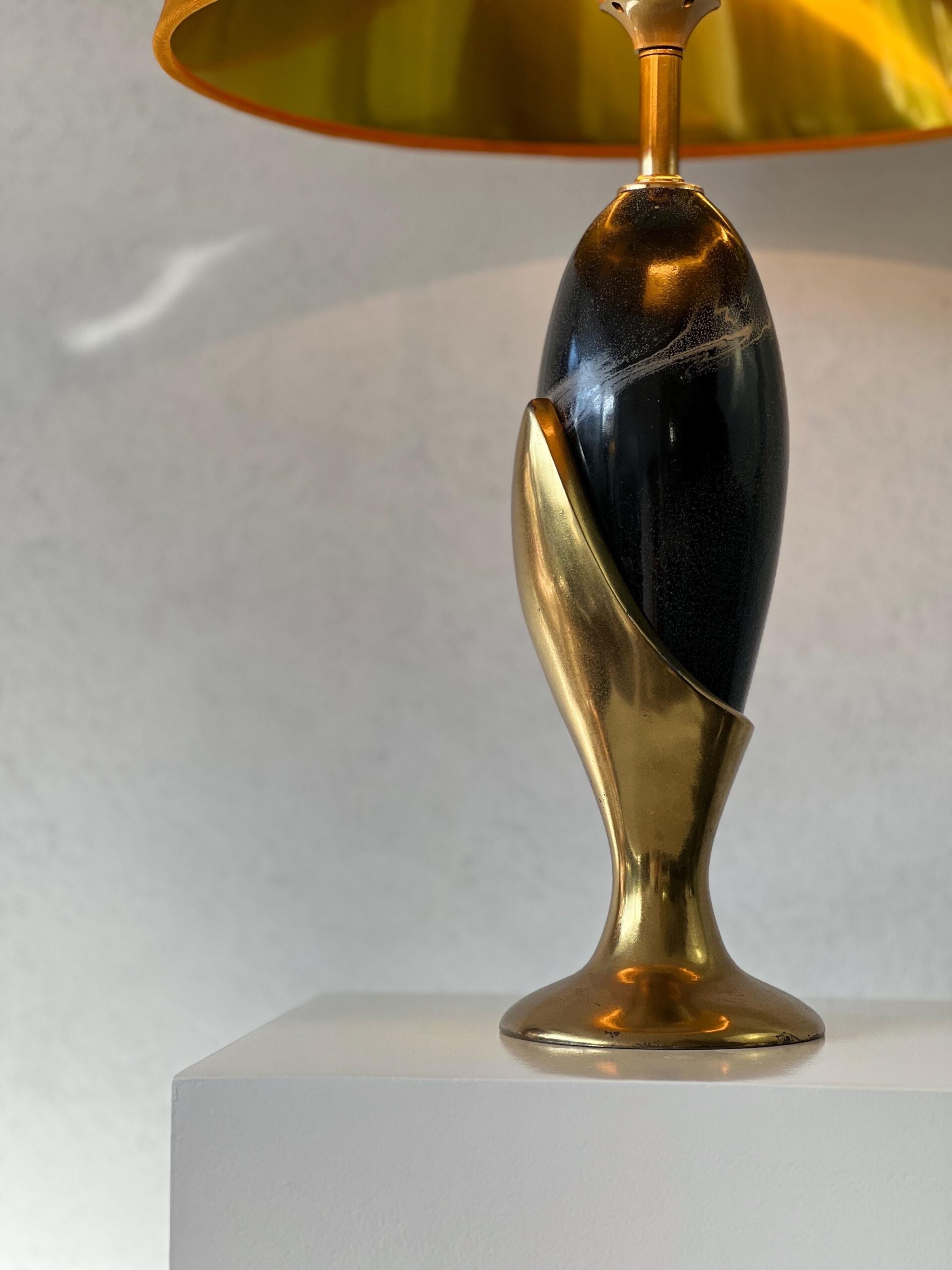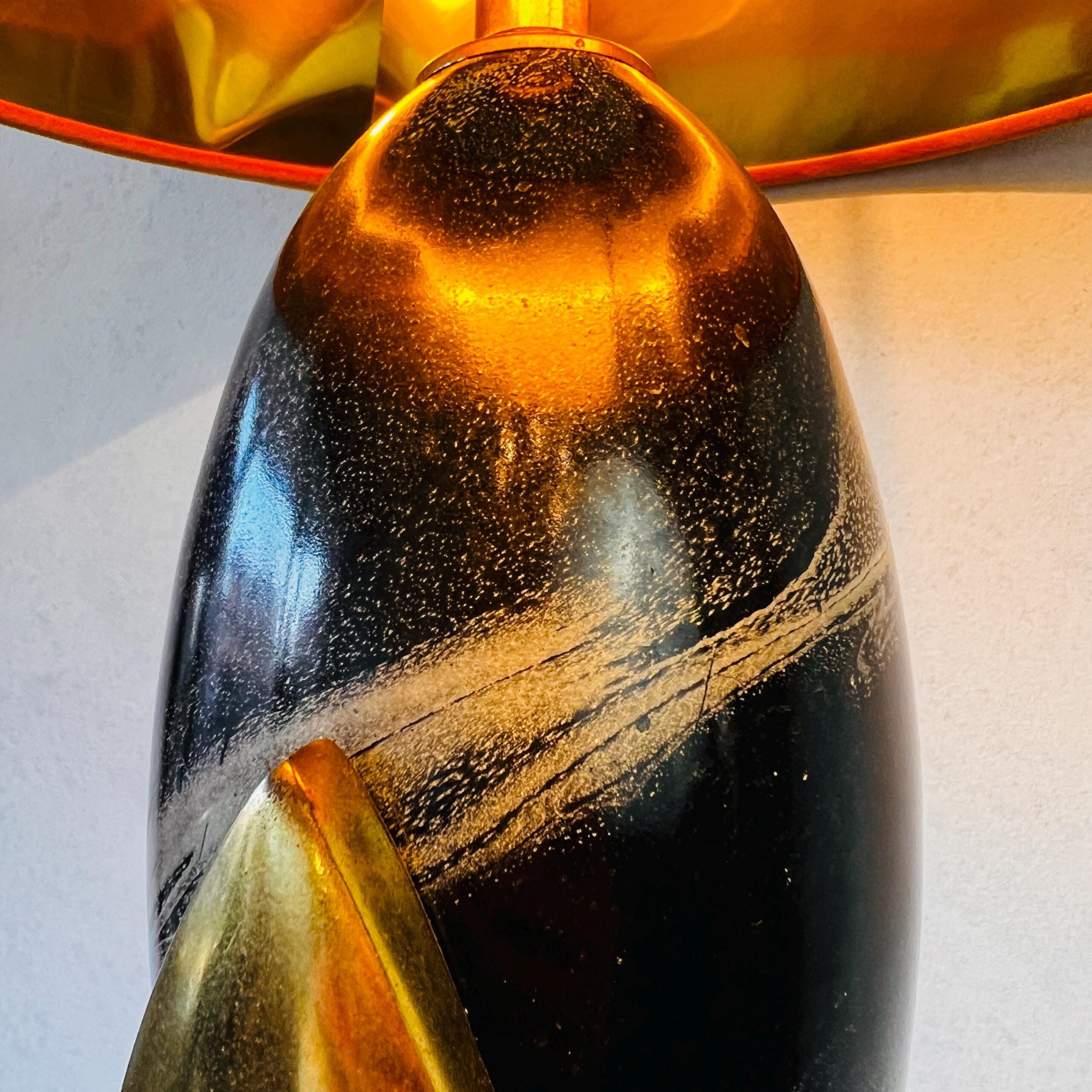 Glowing softly in the corner of a bedroom or reading nook, this one-of-a-kind table lamp brings a cozy, nostalgic feel in all the right ways. With its sculptural ceramic base and bold orange shade, it’s a warm statement piece for lovers of retro color and mid-century form.