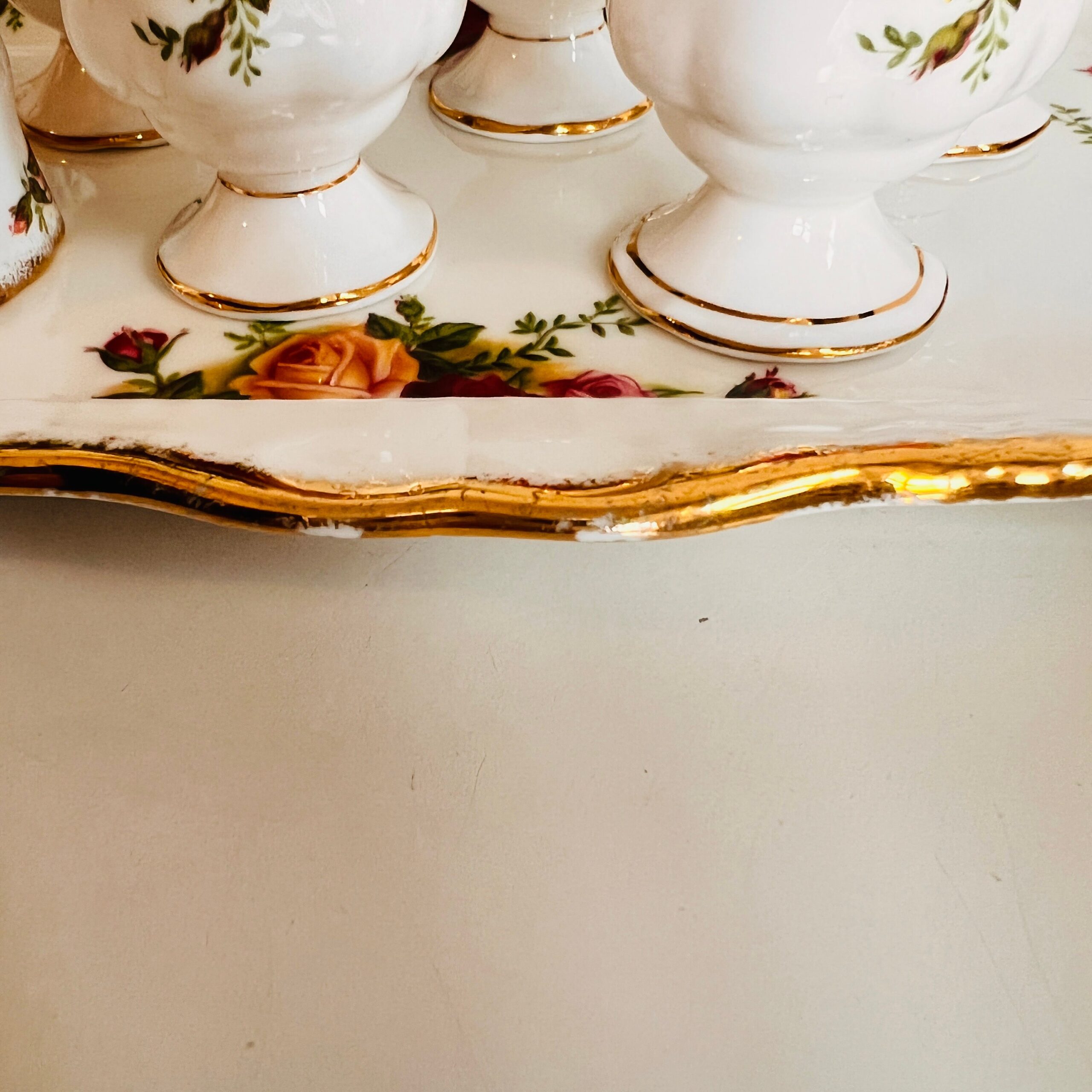 A delicate nod to tradition, this set of six Royal Albert egg cups from the beloved Old Country Roses collection brings charm and romance to your breakfast table. First-quality bone china with bold floral garlands and rich gold trim, each piece is a testament to English craftsmanship that blends beauty with everyday function.