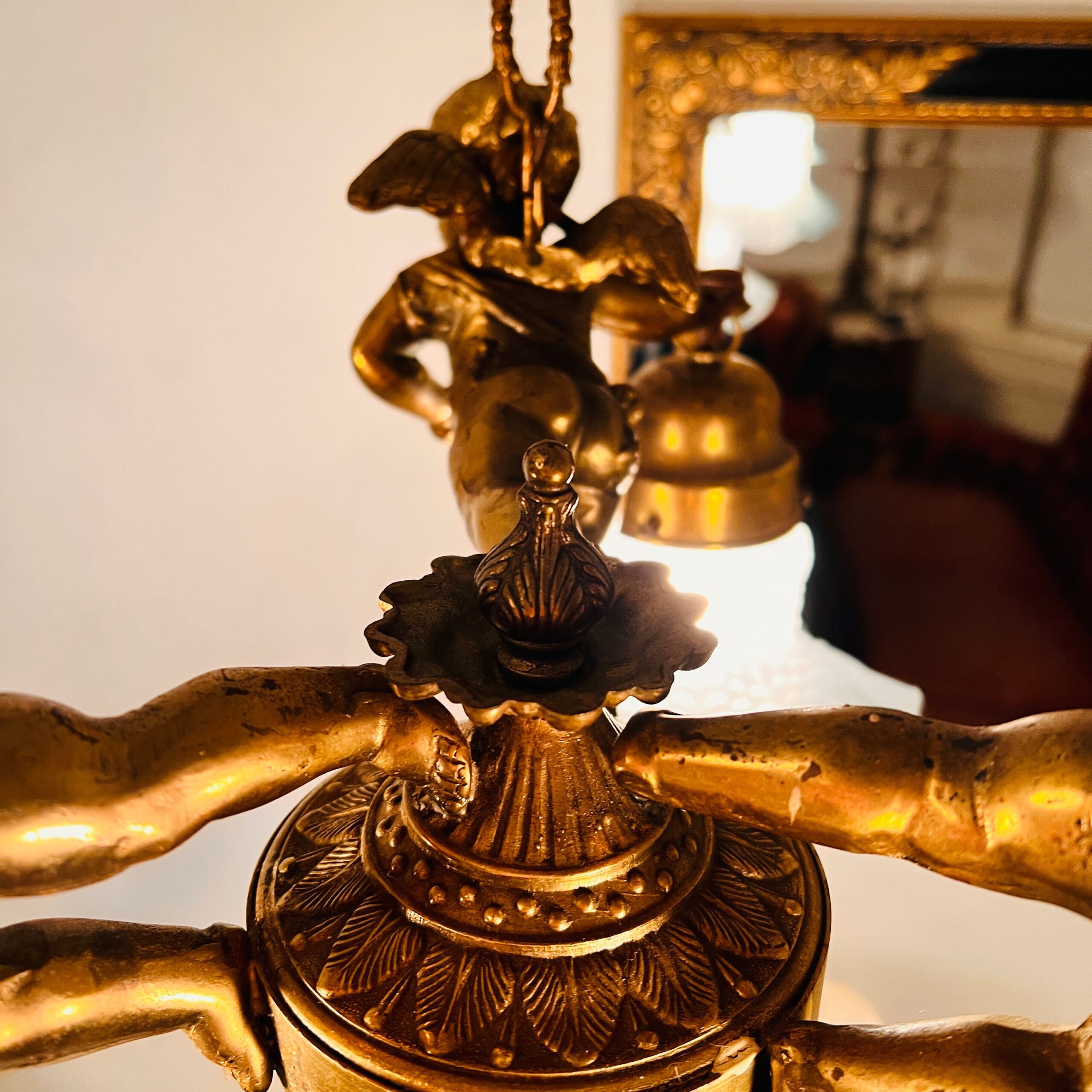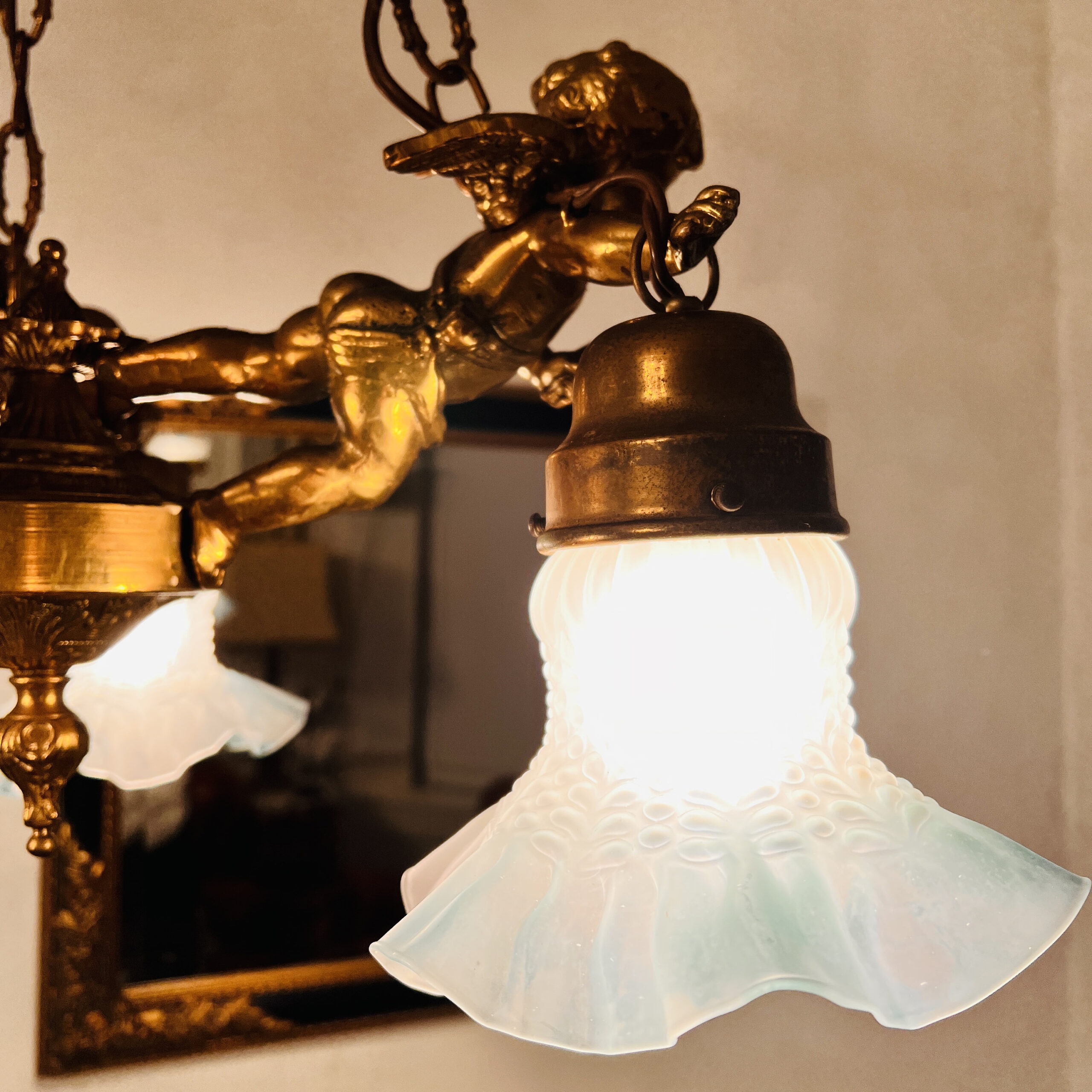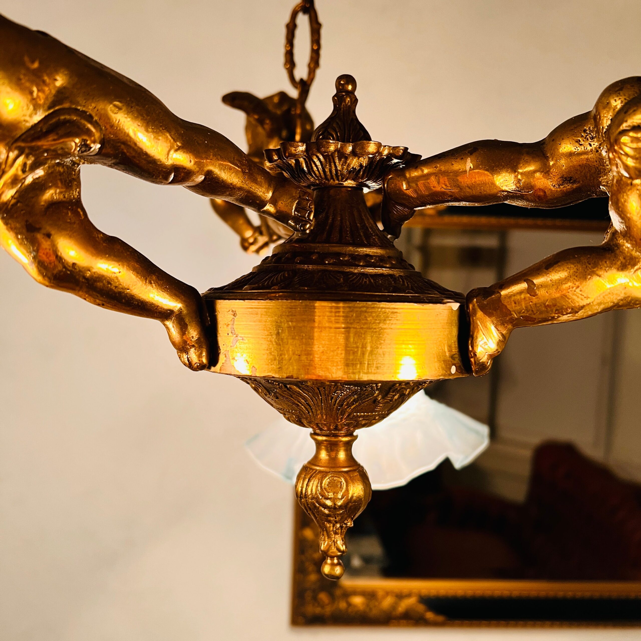 19th Century French Bronze Chandelier – 3 Cherub Light Holders, Ornate Rococo Style