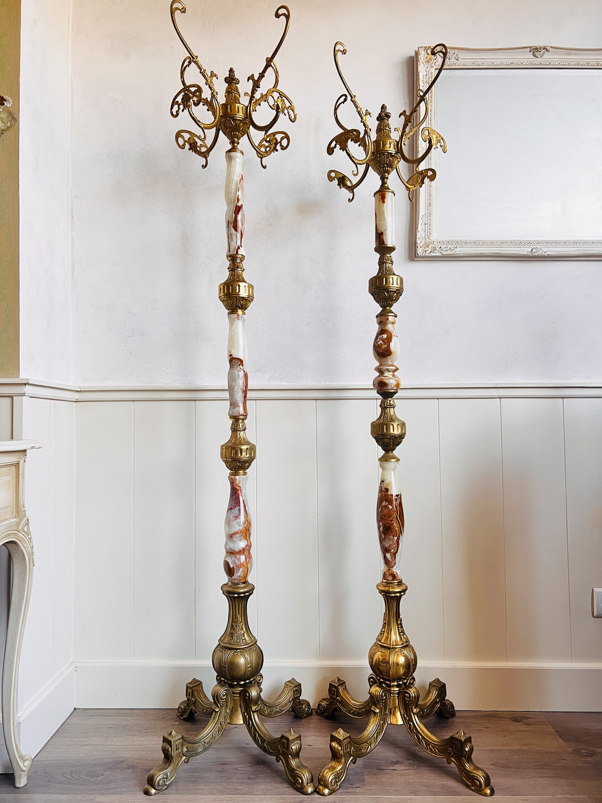 Italian Marble Hall Tree – Tall Brass Coat Rack, Mid-Century Hollywood Regency