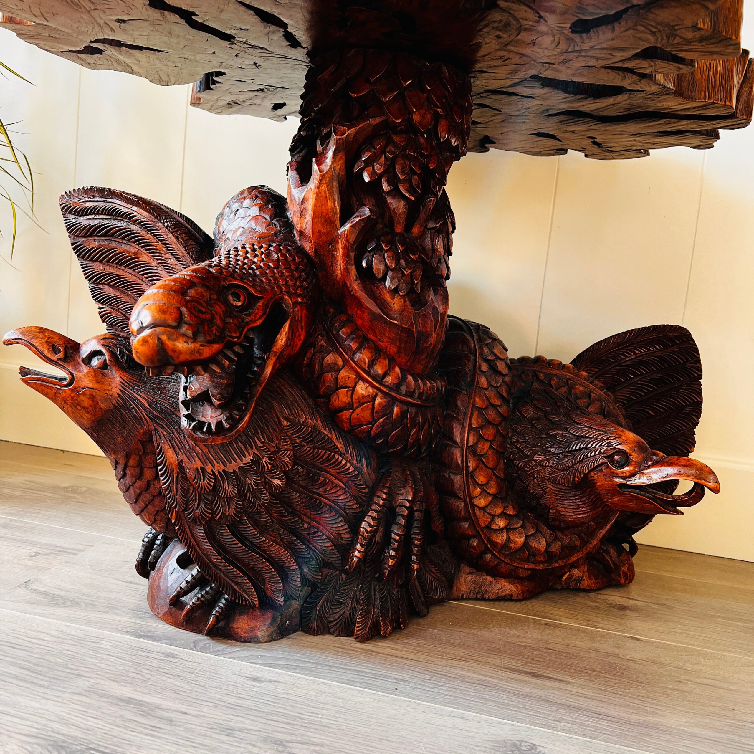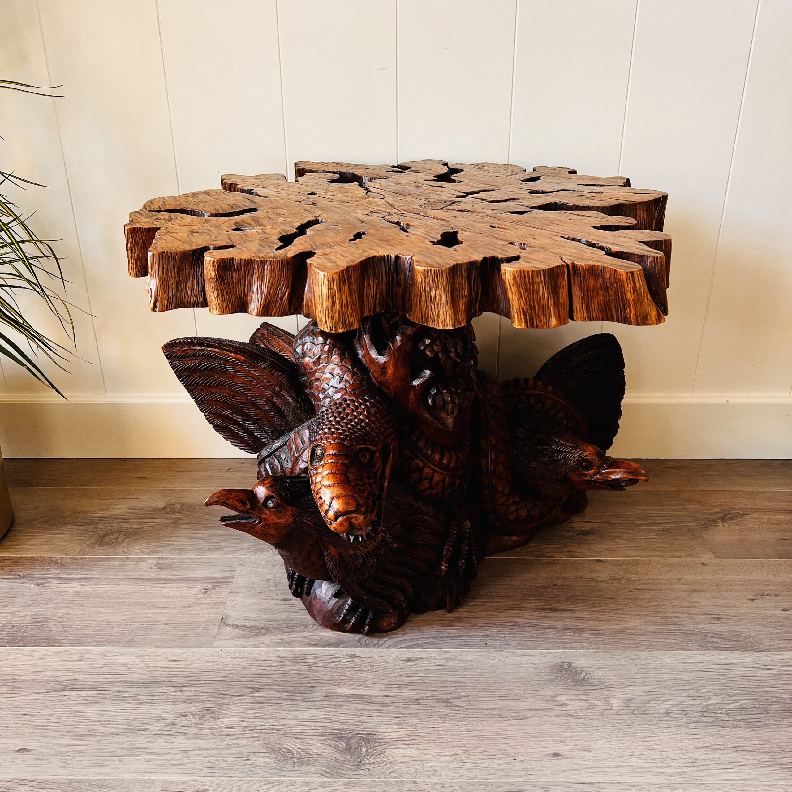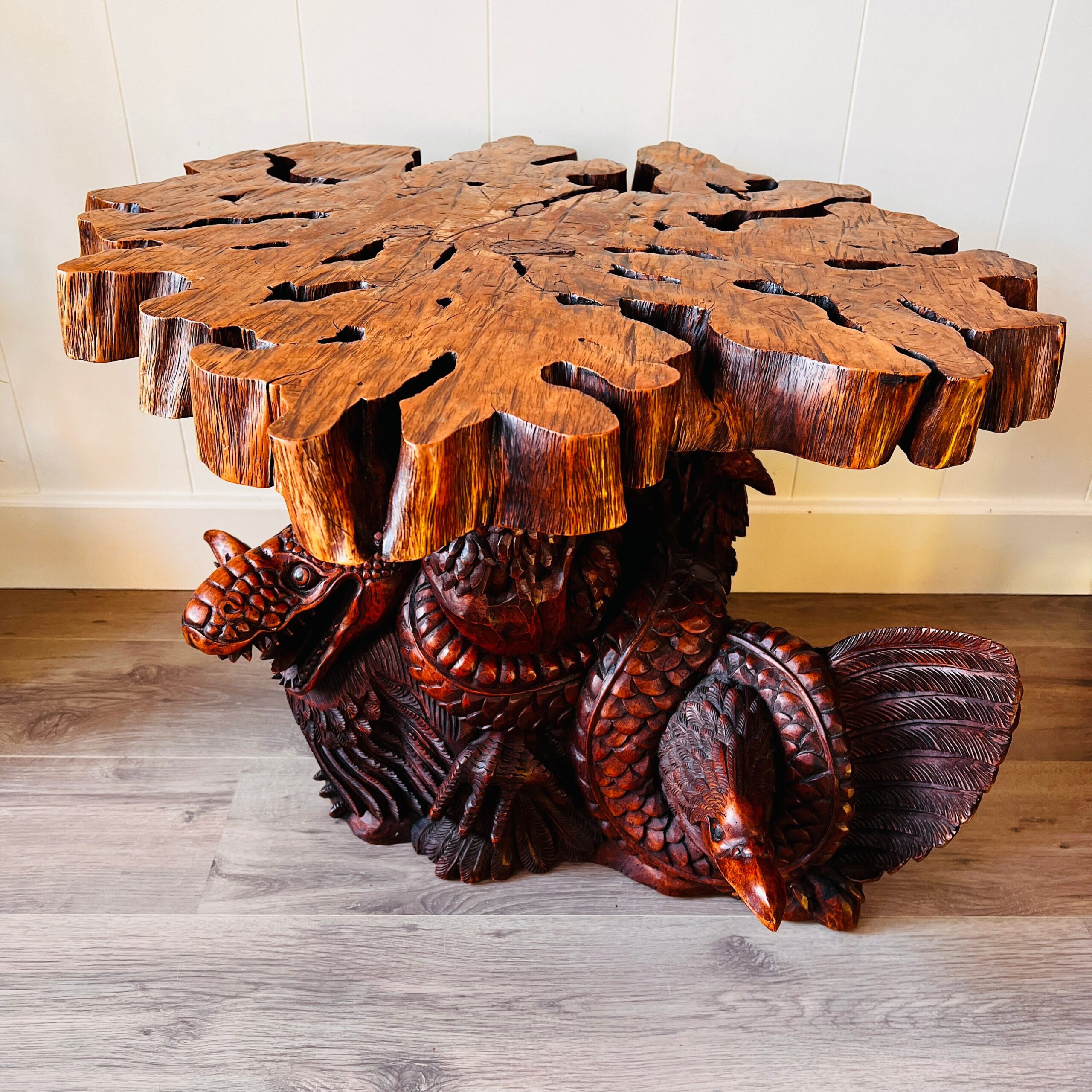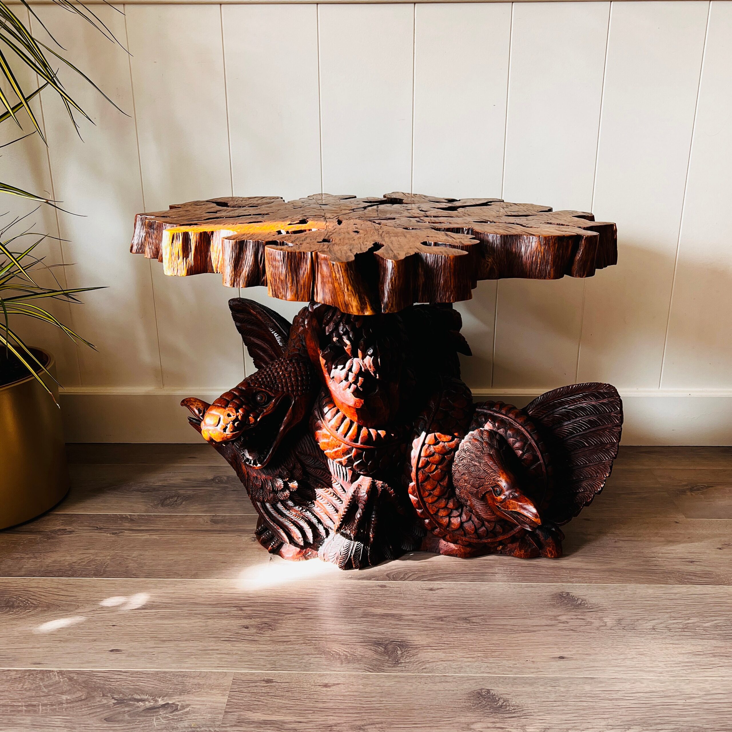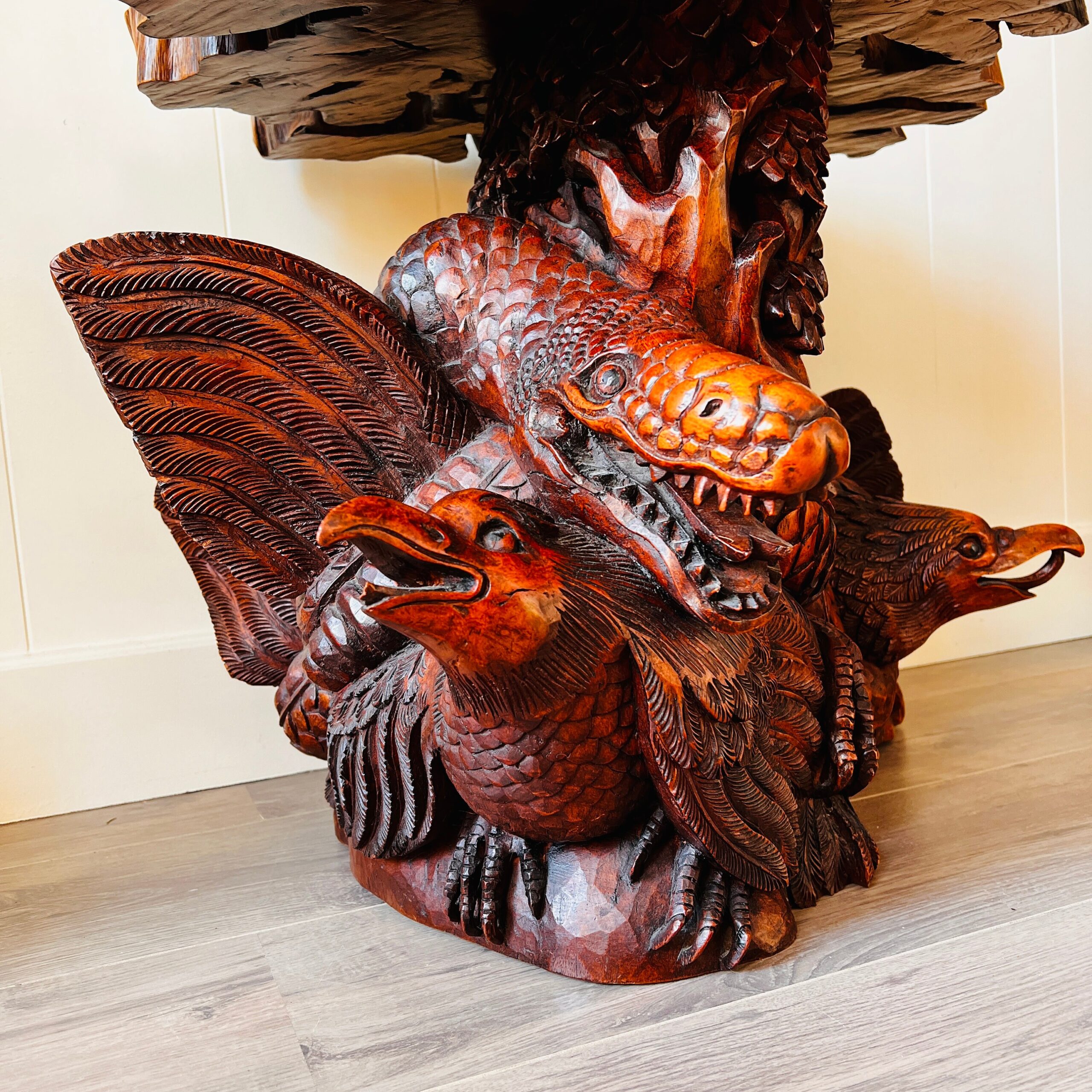 Unique Hand Carved Wood Table, Interior Design, home decor, eagles and snakes