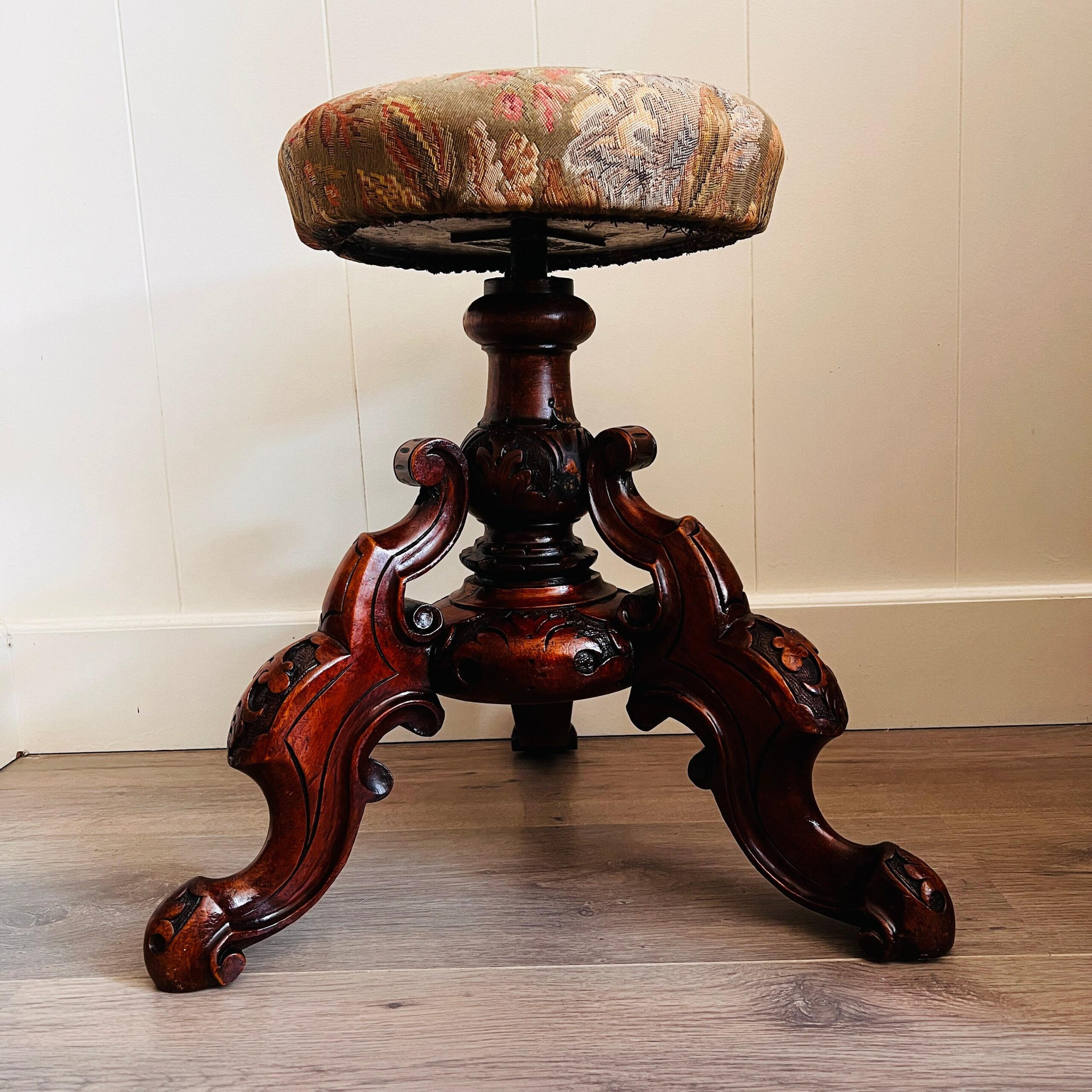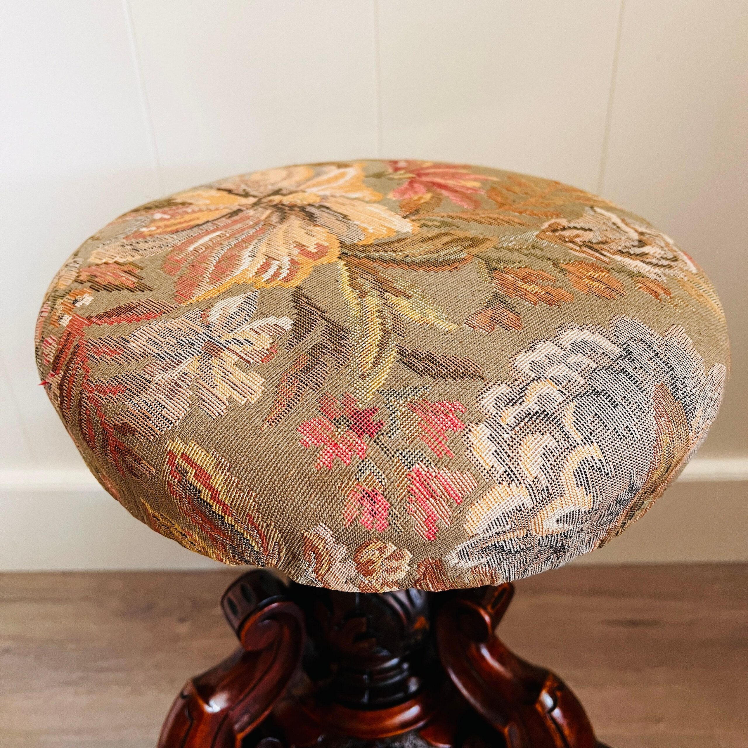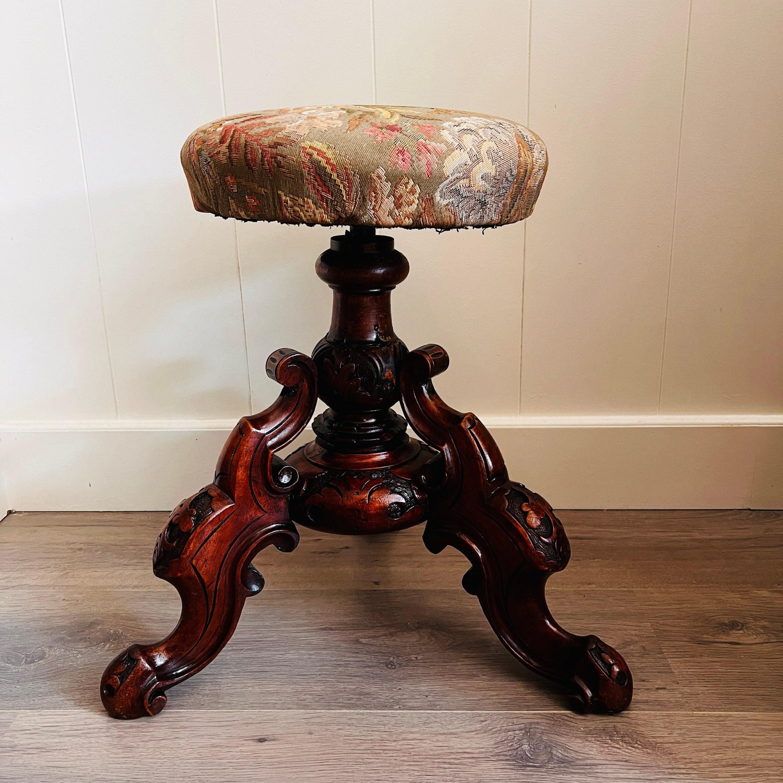 Victorian Wood Piano Stool – Adjustable Round Seat with Turned Legs