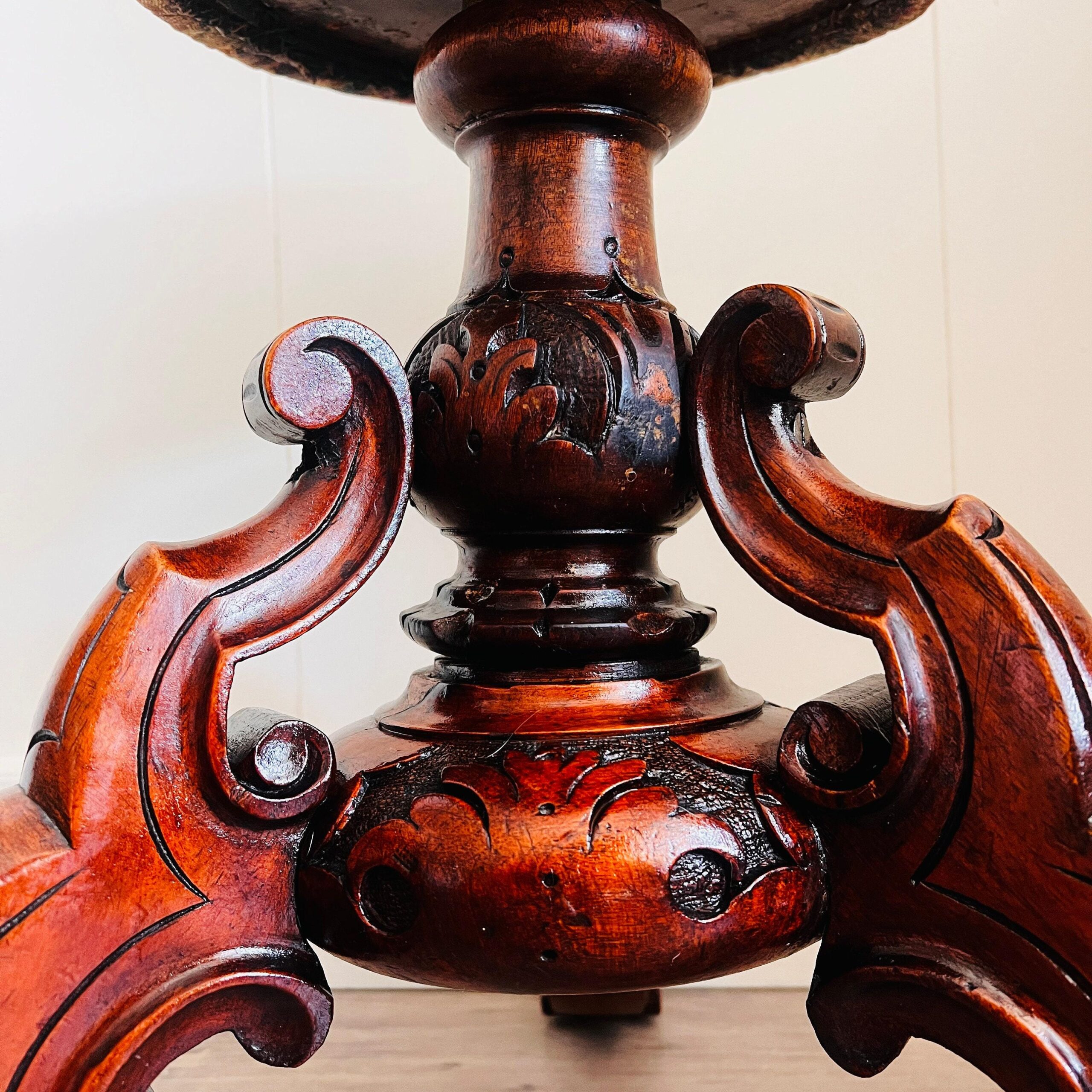 A sculptural accent as much as a functional piece, this antique Victorian piano stool brings elegance and utility to any vintage-inspired room. Its solid wood construction, beautifully turned legs, and rotating round seat offer both timeless charm and thoughtful craftsmanship – perfect for pianists or as a decorative side piece in your home.