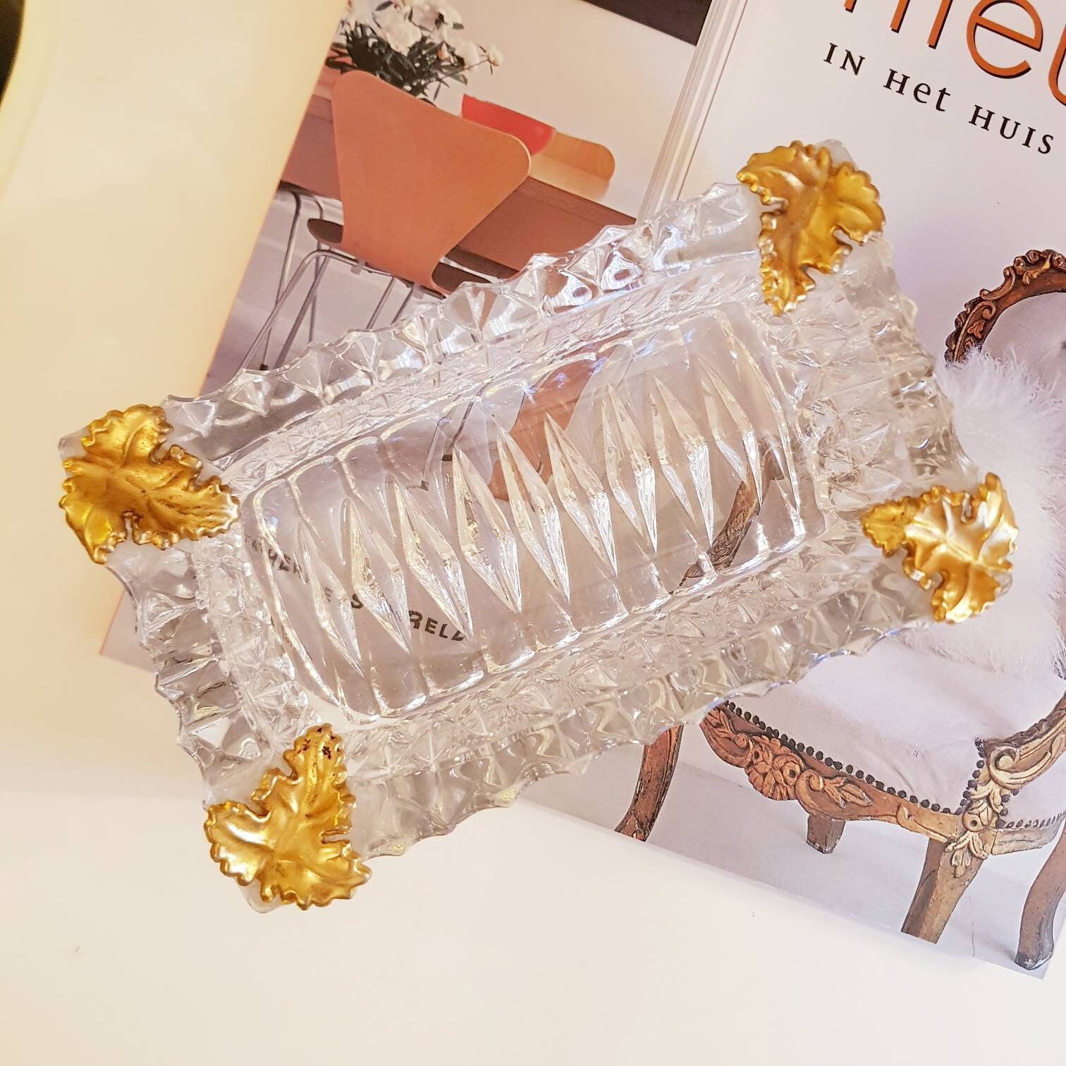 Crystal Cut Glass Ashtray with Gold Rim – Mid Century Barware Accent