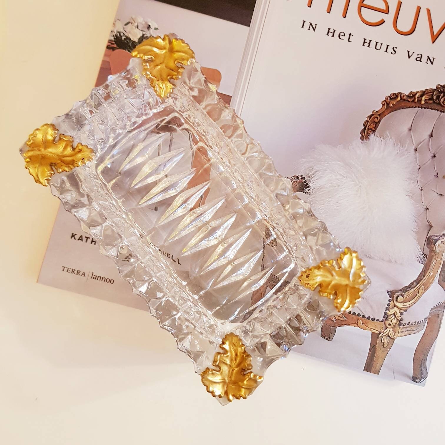 Quietly glamorous, this crystal cut ashtray brings a touch of mid-century elegance to your coffee table or bar cart. With its faceted design and delicate gold rim, it blurs the line between everyday object and sculptural decor. Whether used as a functional piece or displayed with other vintage barware, it evokes a time when even the smallest details were beautiful.