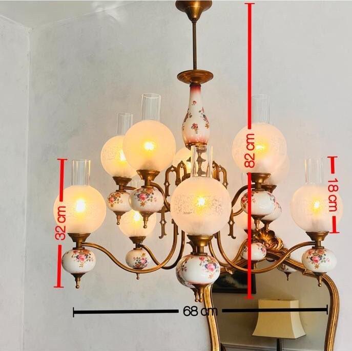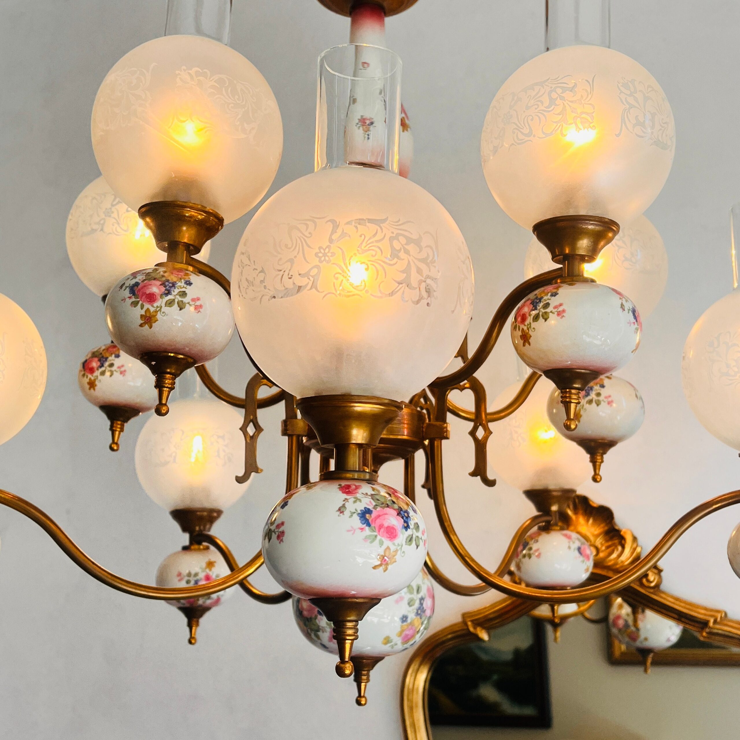 Vintage Chandelier, home decor, big chandelier, with 10 Lights, Made of Porcelain with Frosted Glass Globes