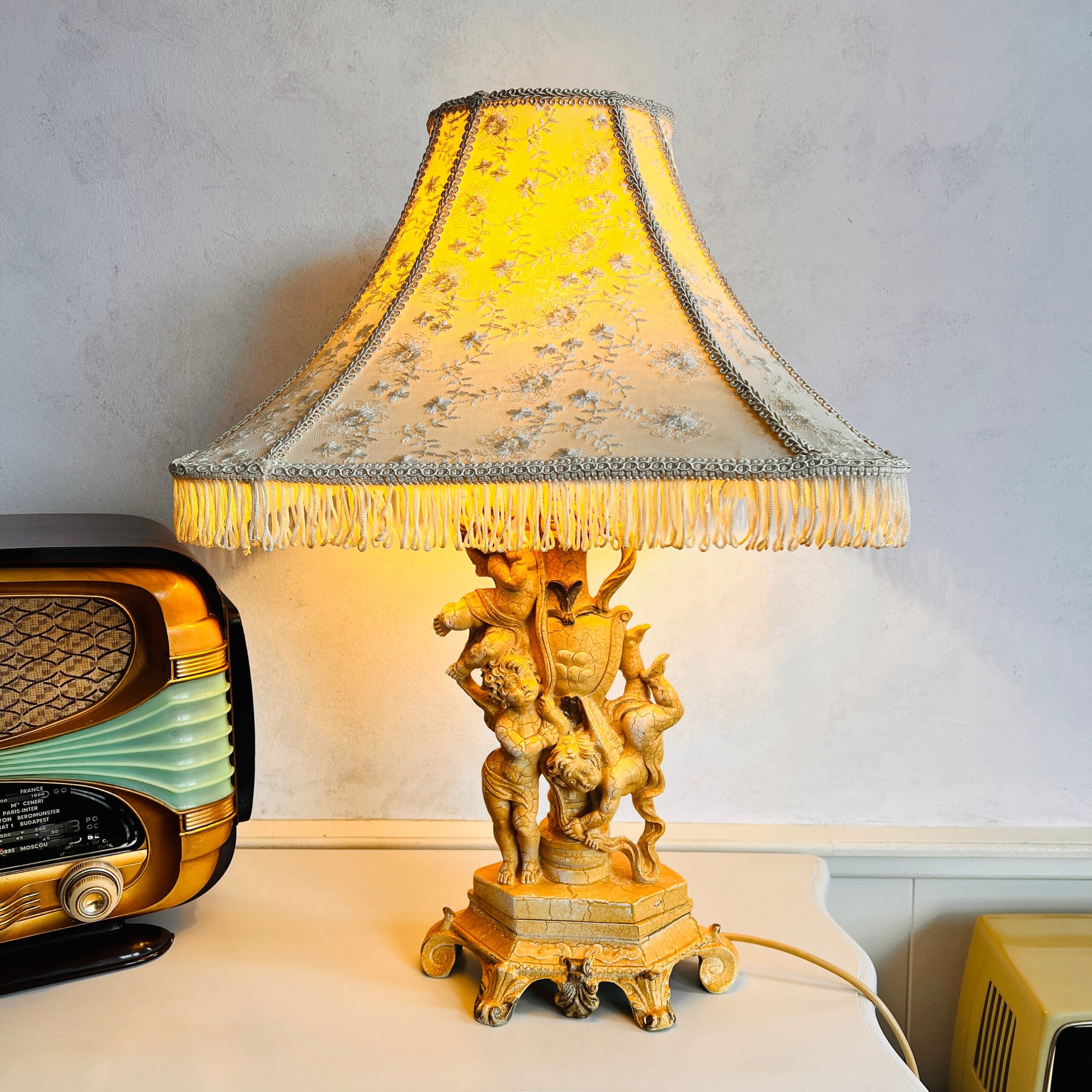 Vintage Cherubs Lamp, vintage table lamp, big lampshade, special lighting, romantic lighting