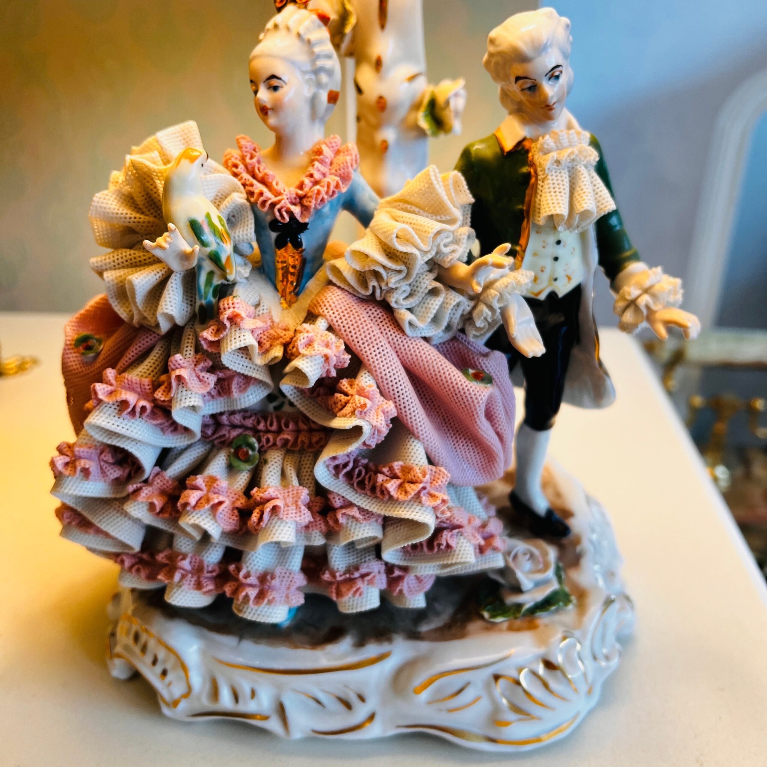 Illuminate your home with timeless elegance using this Vintage Dresden Porcelain Bedside/Table Lamp, a captivating piece of home decor that hails from Germany.