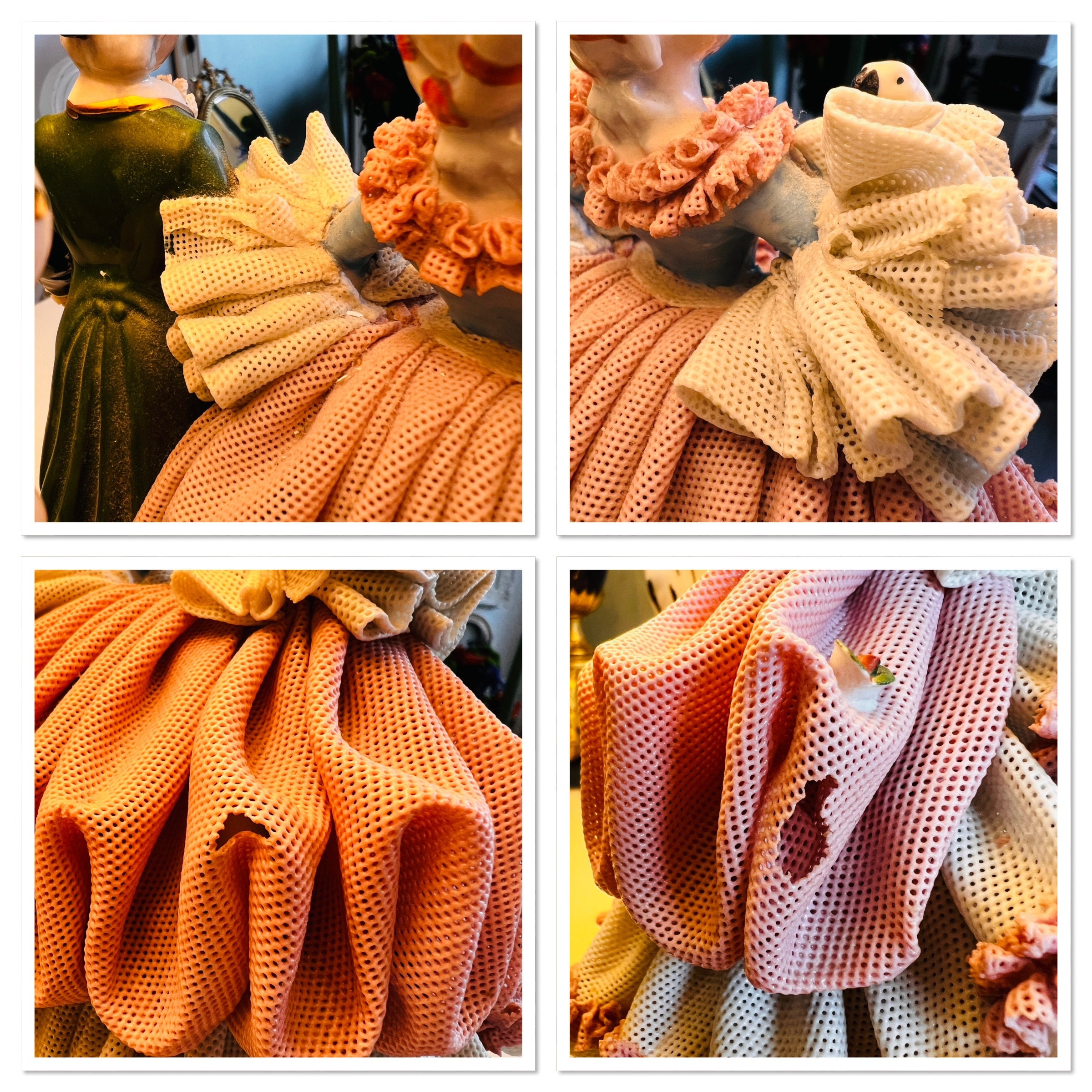 The lamp is in a used vintage condition, with small damages to her dress; please see the photos that are part of the item’s description. Otherwise, it is such a beautiful lamp.