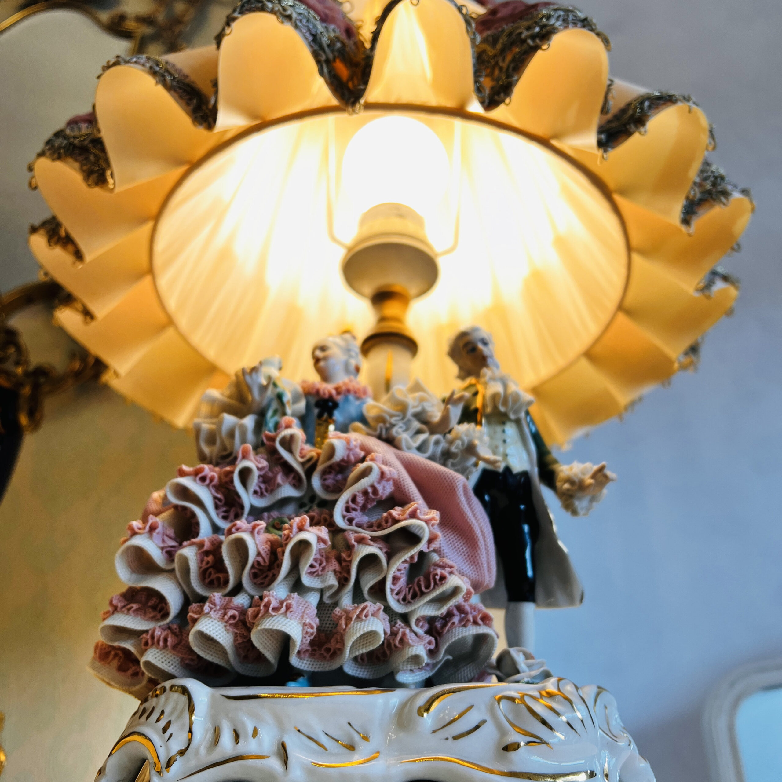 Vintage Dresden porcelain bedside table lamp, home decor Germany