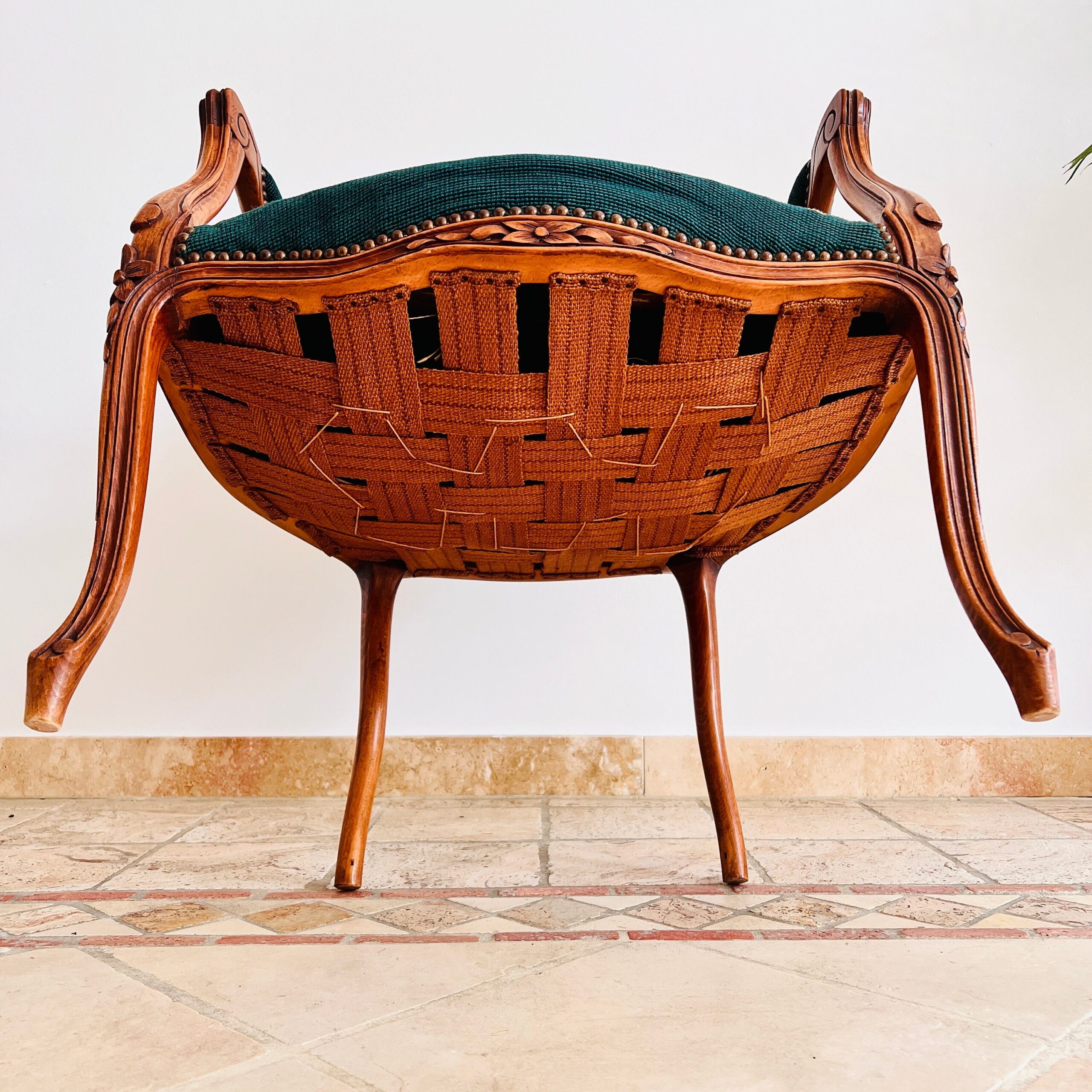 • Vintage condition: sturdy and usable; minor wear to fabric and patina to wood in areas, consistent with age