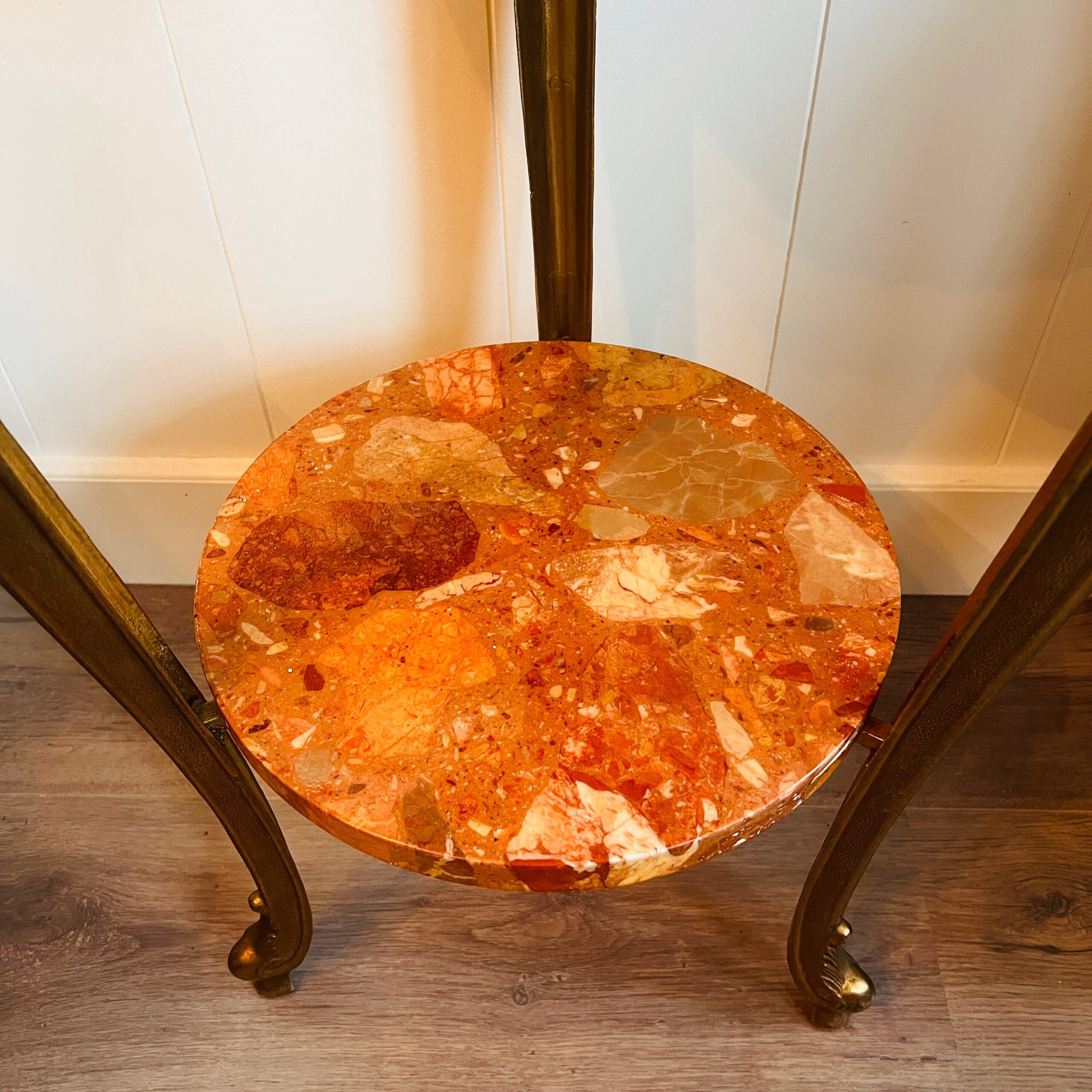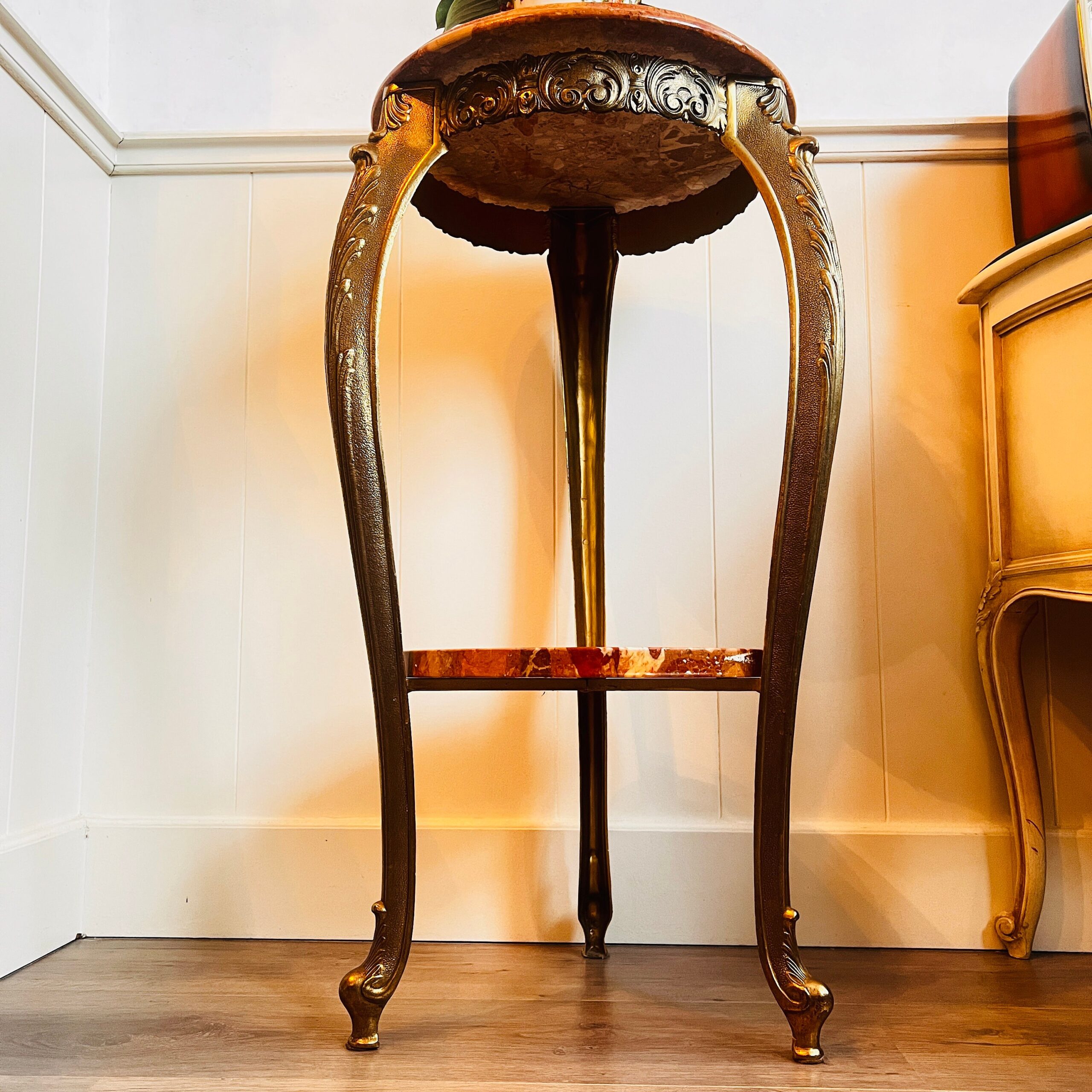 Rosso Verona Marble Pedestal – Hollywood Regency Tall Plant Stand or Accent Table