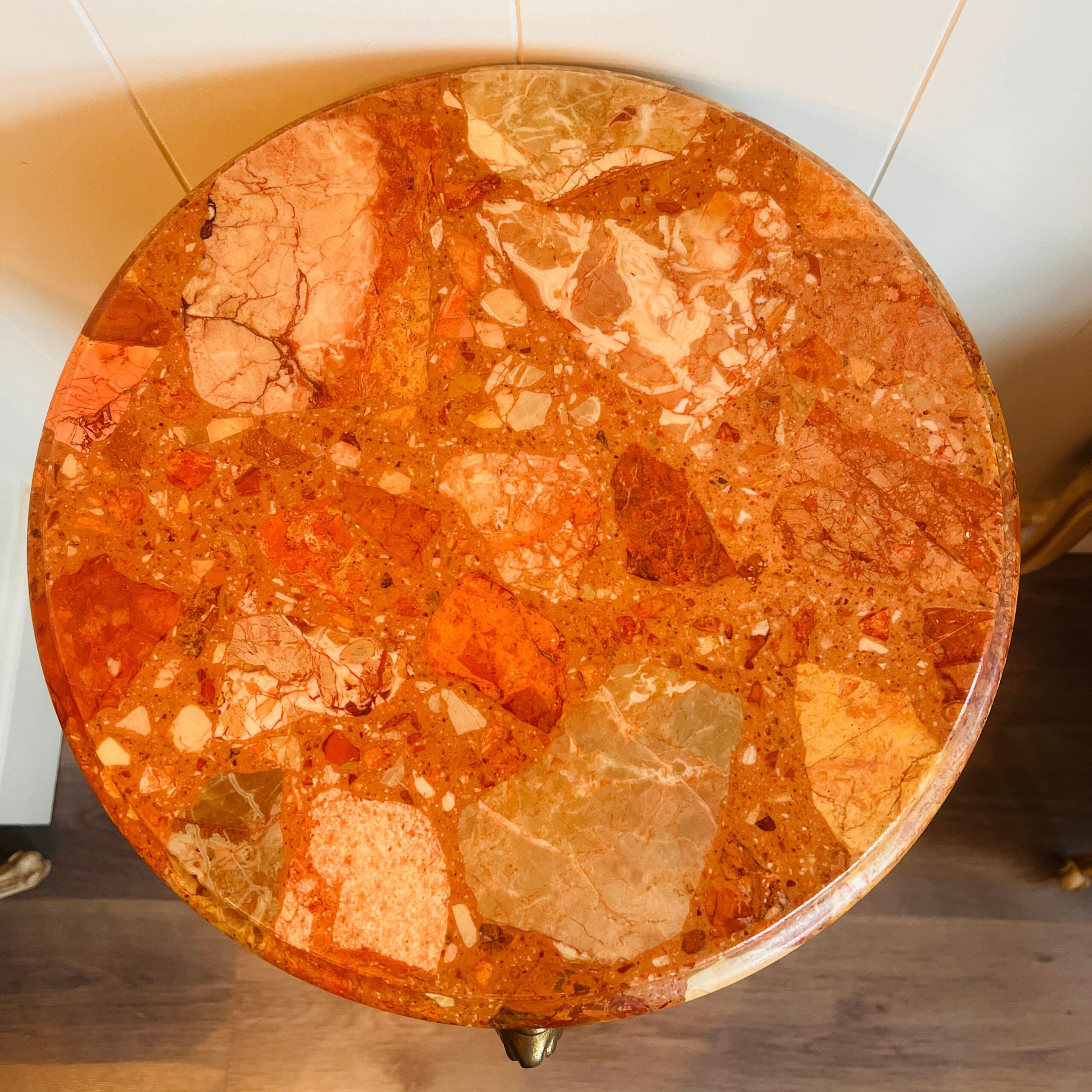Warm-toned and unmistakably elegant, this Rosso Verona marble pedestal brings a grounded glamour to any room. With rich terracotta hues and warm veining throughout, it evokes classic Italian design filtered through Hollywood Regency style – ideal for showcasing a favorite sculpture, lush fern, or treasured vase.
