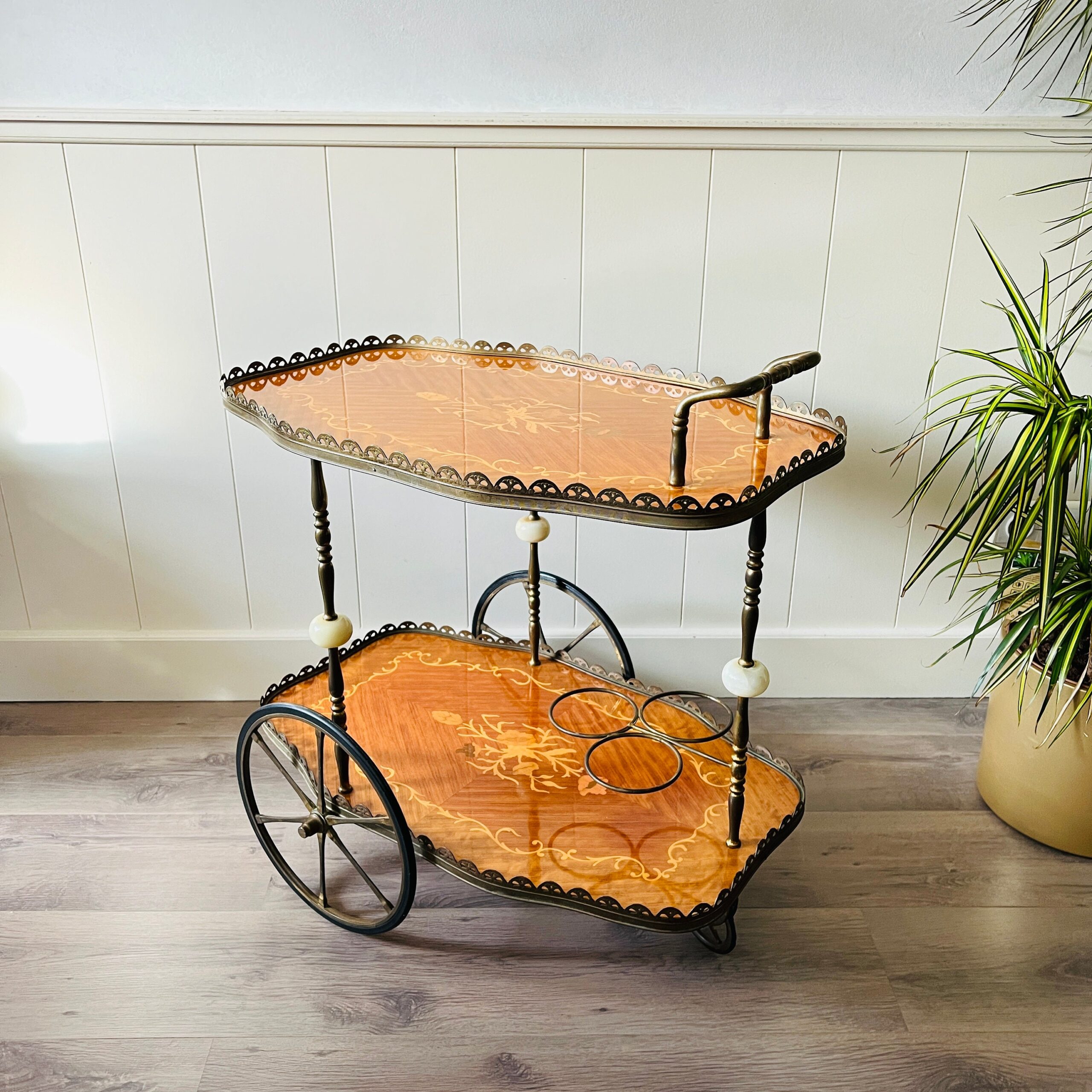 Vintage Brass & Glass Bar Cart: Hollywood Regency Style Drinks Trolley