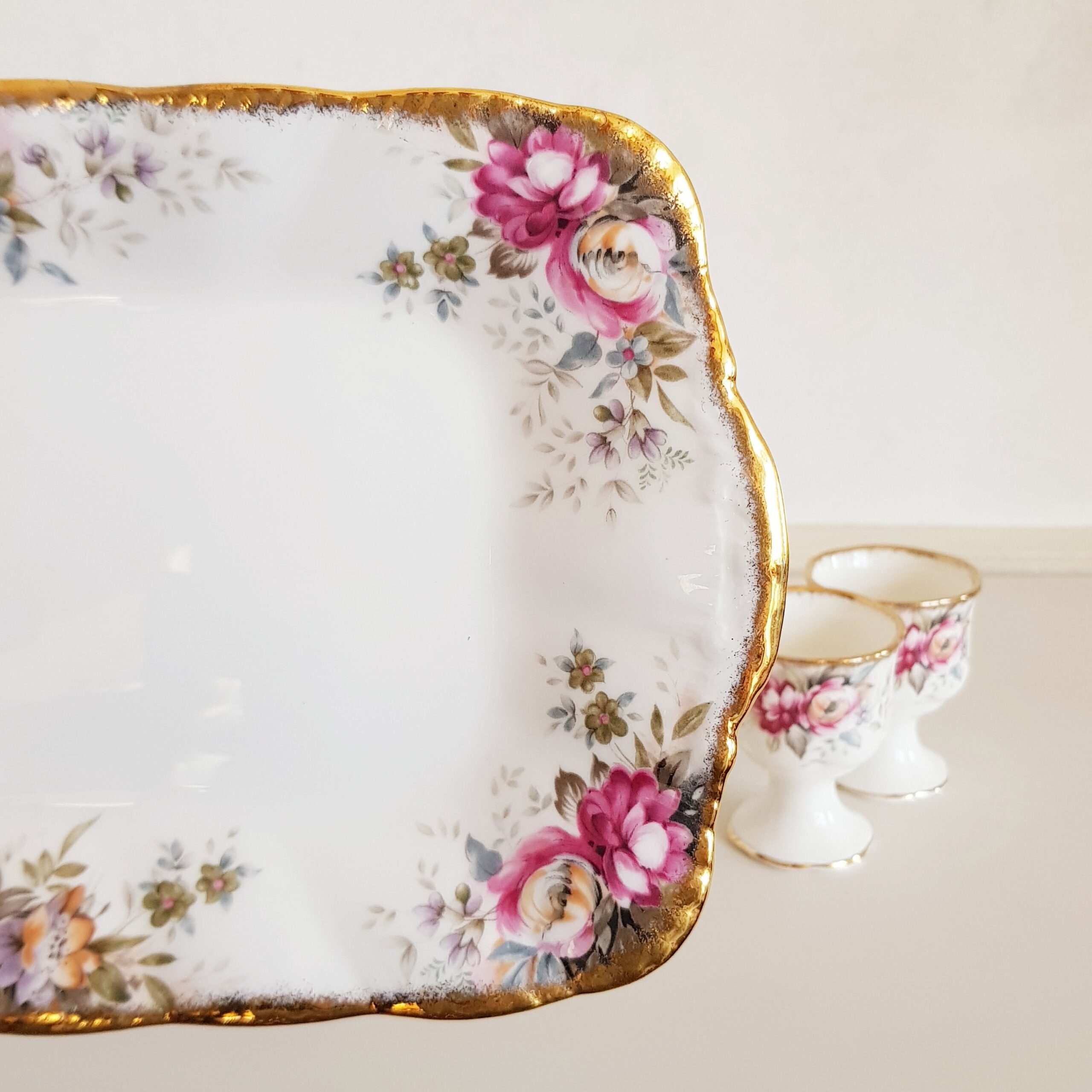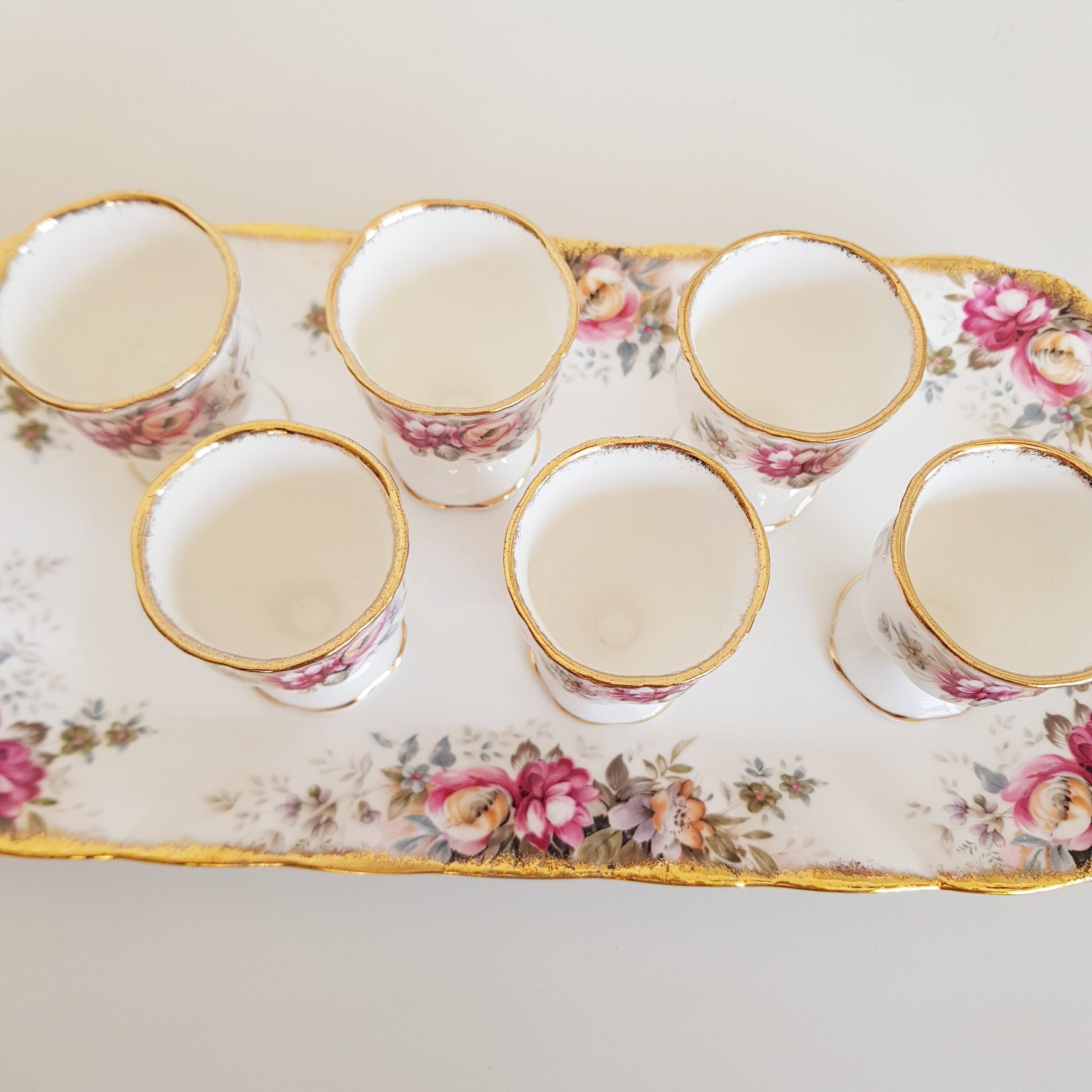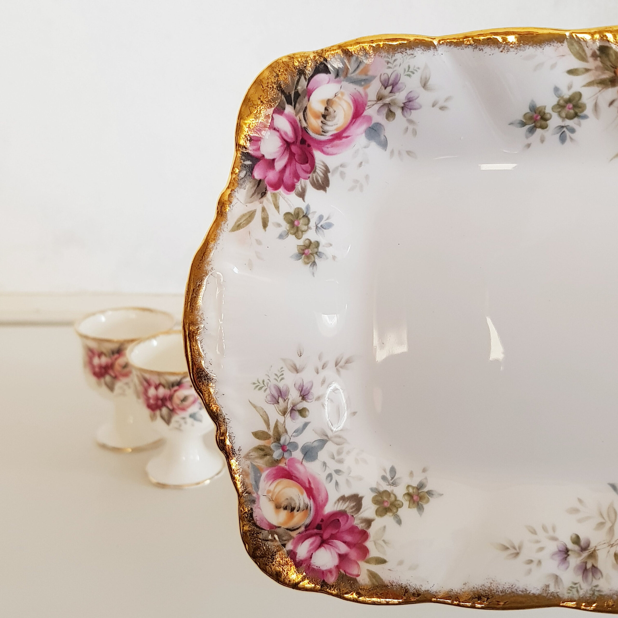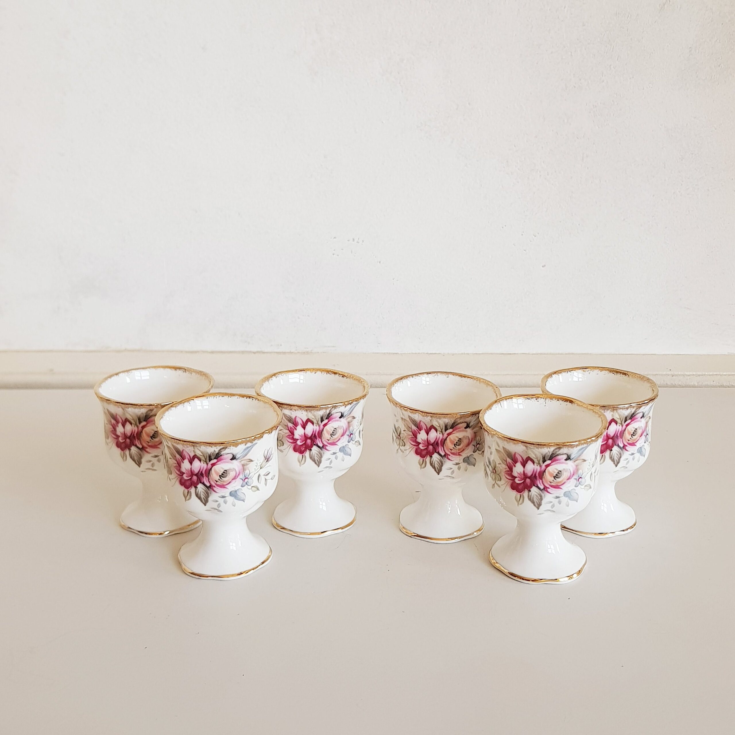 Queen Anne Bone China Egg Cups with Underplate – English Floral Breakfast Set
