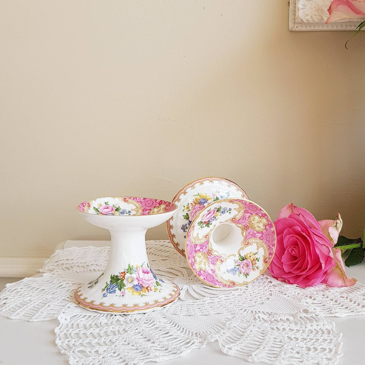Royal Albert Lady Carlyle Porcelain Candle Holders – Floral Pair, Romantic English Style