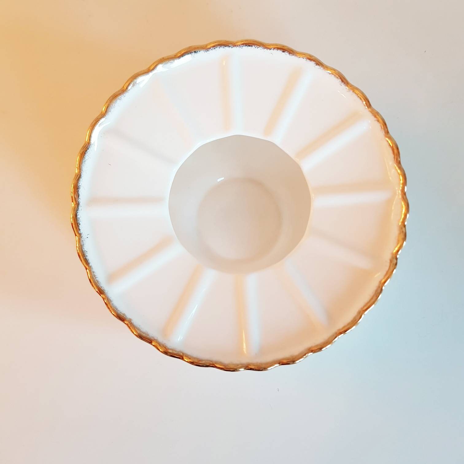 It’s becoming more and more difficult to own the original pieces that were made in England! The pattern Moonlight Rose was created in 1987 and was made in England between 1987 and 2002. This is an original Bone China that was produced in England.