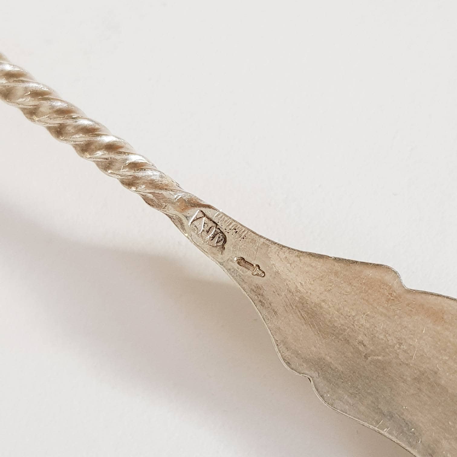 Petite yet refined, this set of six Dutch silver teaspoons blends everyday charm with heirloom elegance. The slender handles and hallmarks speak to old-world workmanship, making them a lovely choice for tea service, dessert presentation, or simply as a display in your vintage silverware collection.