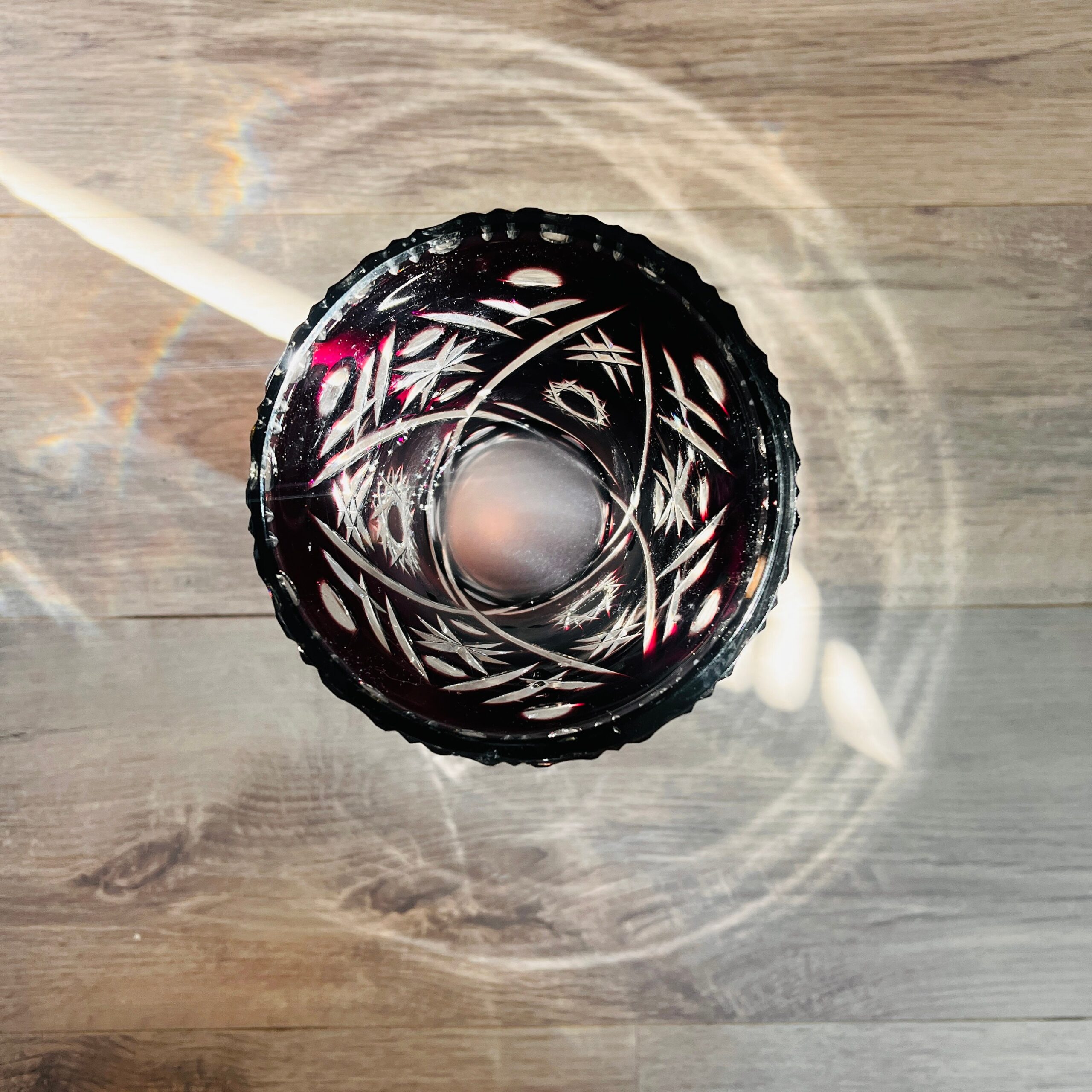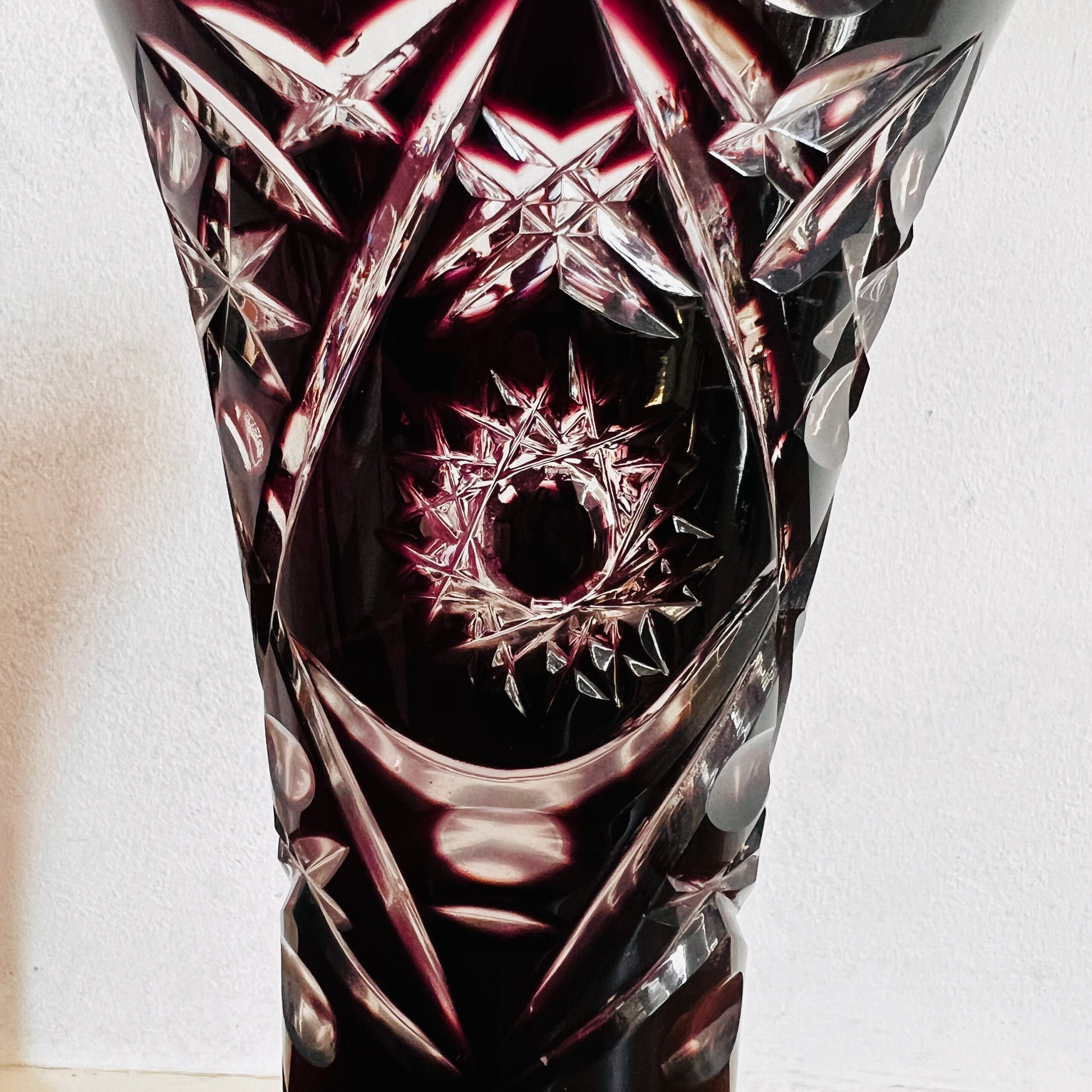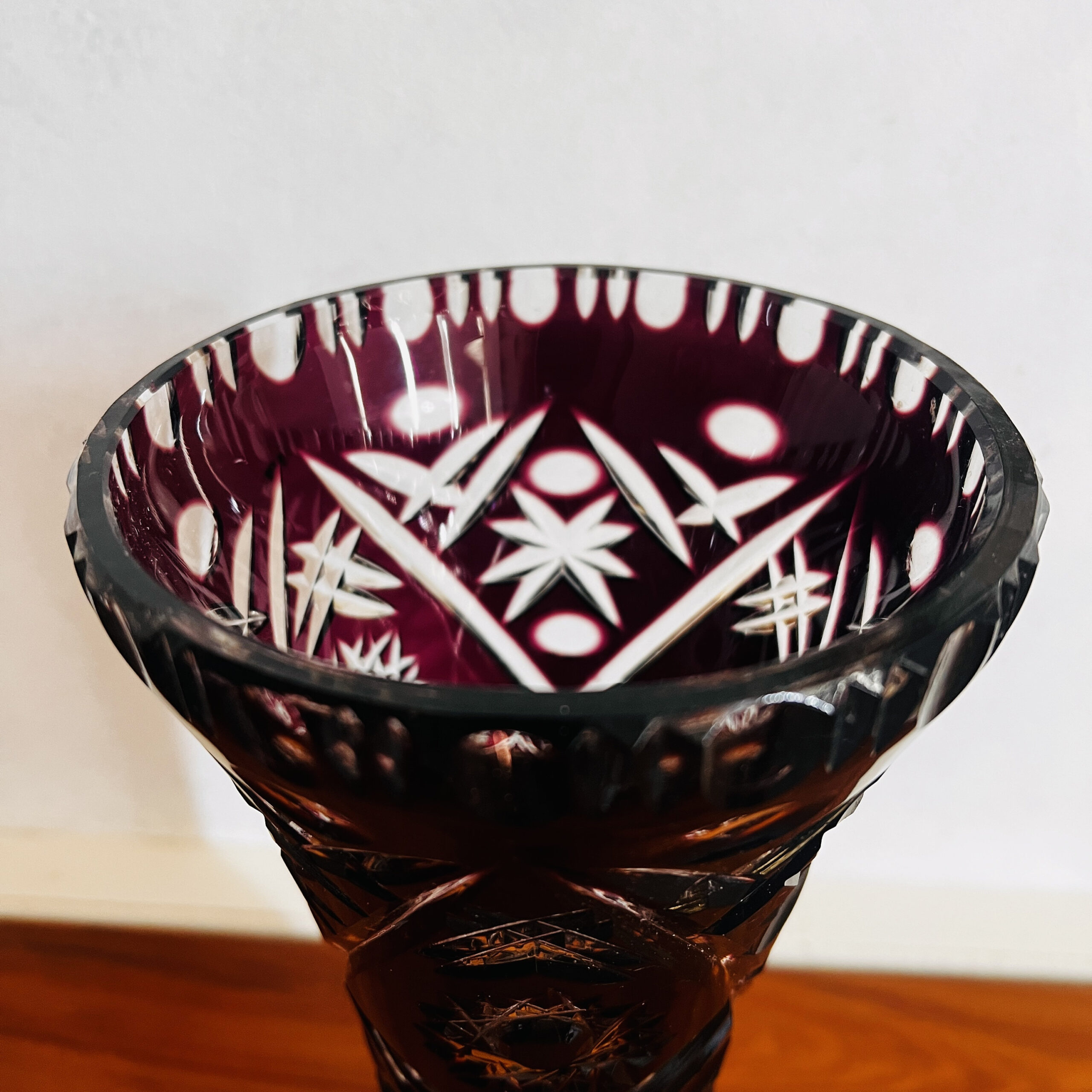 Bohemia Crystal Vase – Deep Purple Cut Glass, Czech Art Deco Style